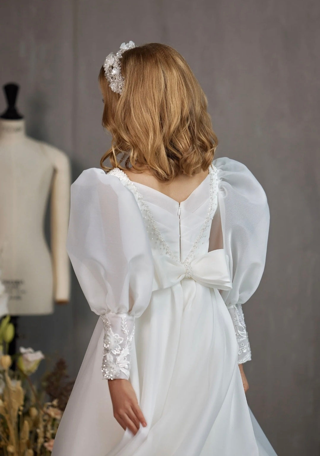 Beautiful And Elegance A-Line Long Sleeve Floral Lace Pearl Beaded Detail Flower/Communion Gown