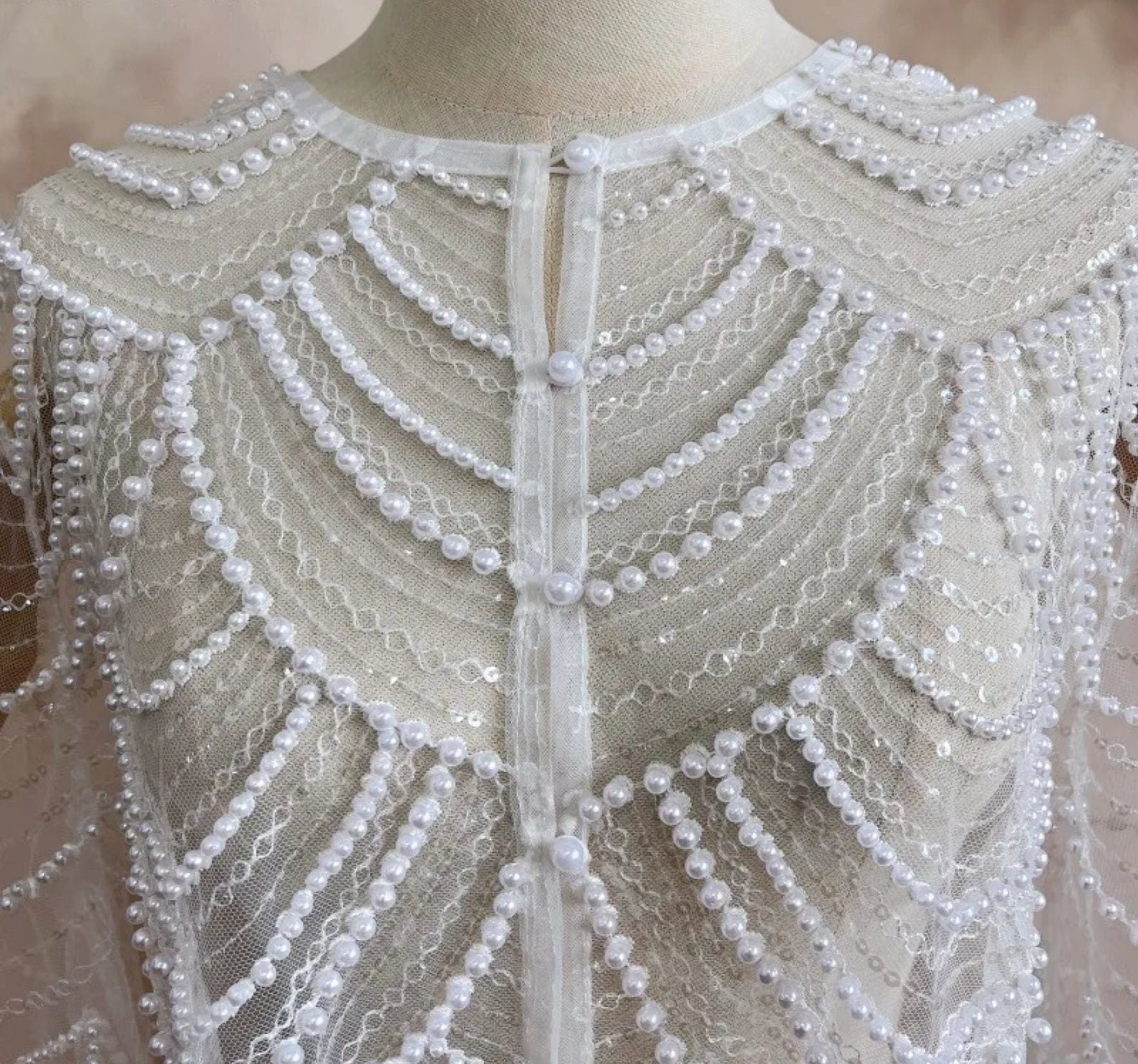 Beautiful Ornate Beaded Layered Scalloped Hem Bridal Special Occasion Party Bolero.