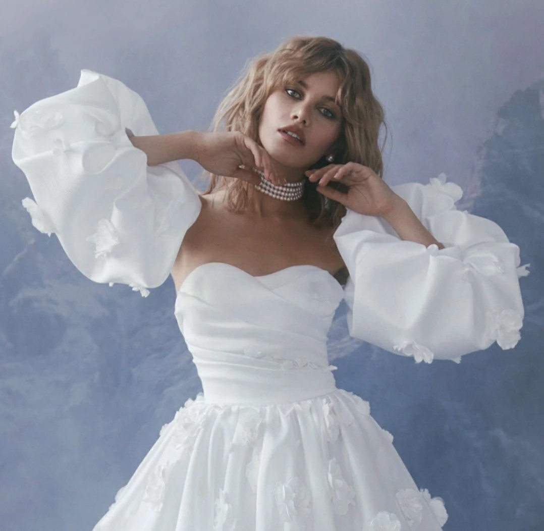 Delicate 3D Floral Appliqué Detached Puff Bridal Sleeves.