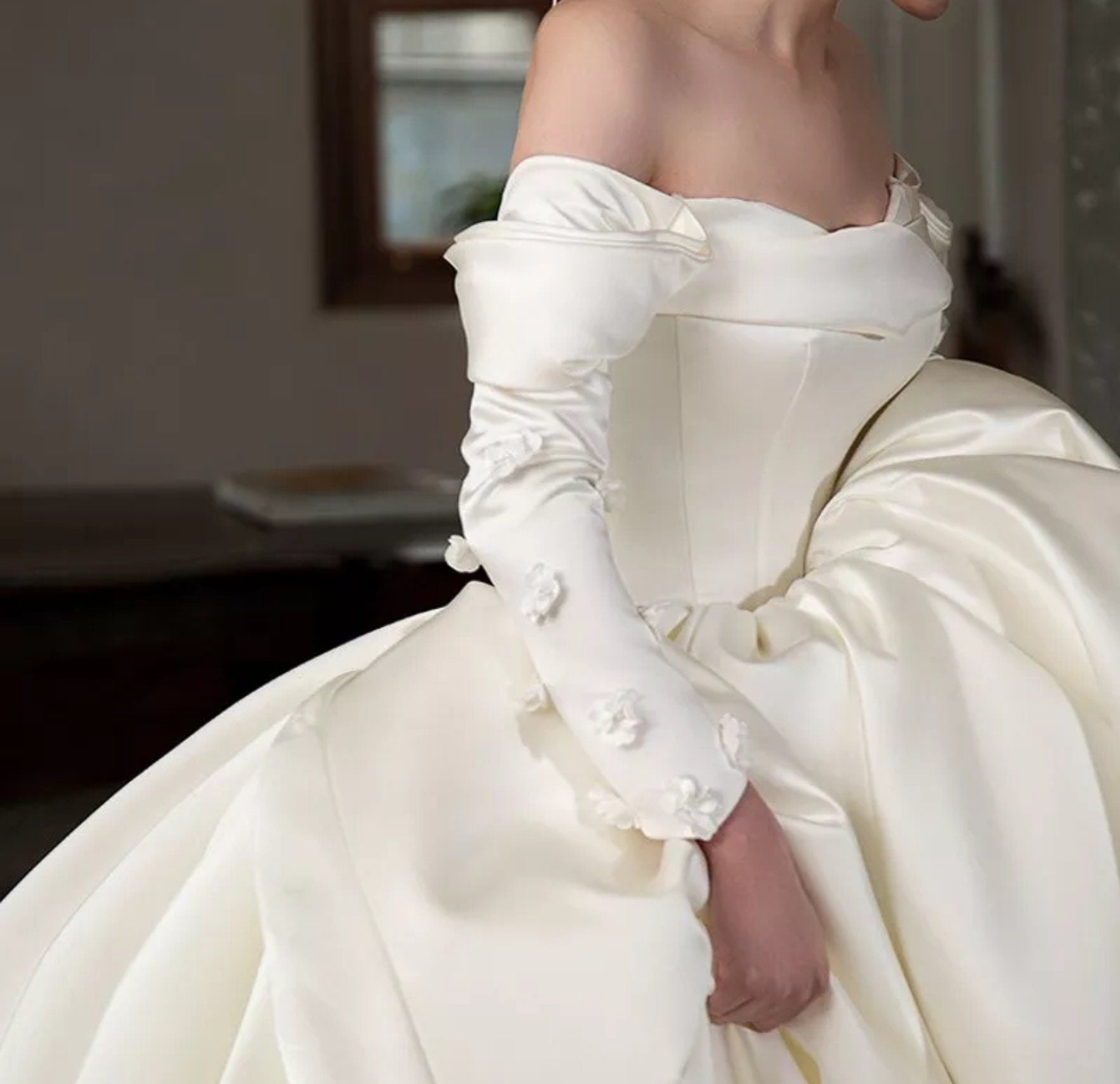 Detached 3/4 Satin Bicep 3D Floral Sleeves.