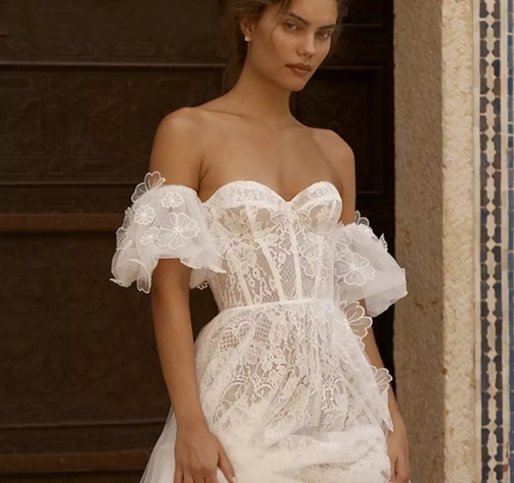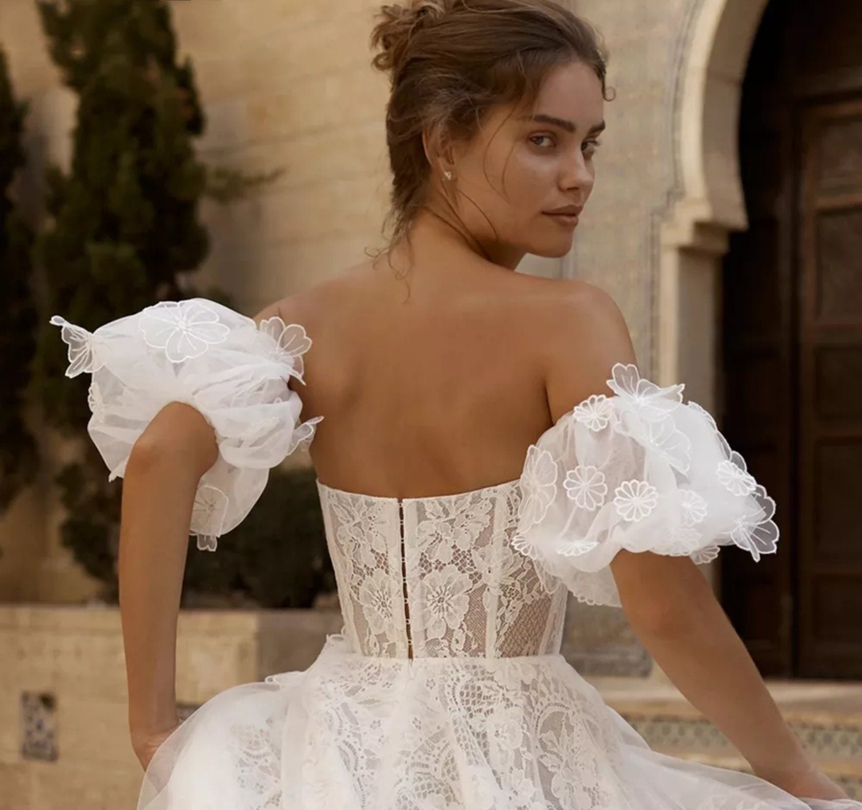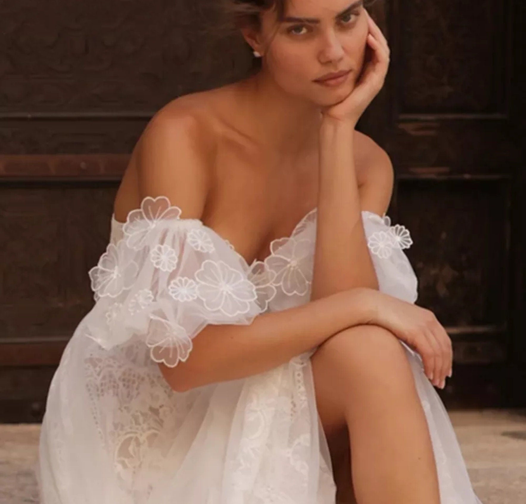 Detached 3D Boho Beach Short Floral Appliqué Sleeves
