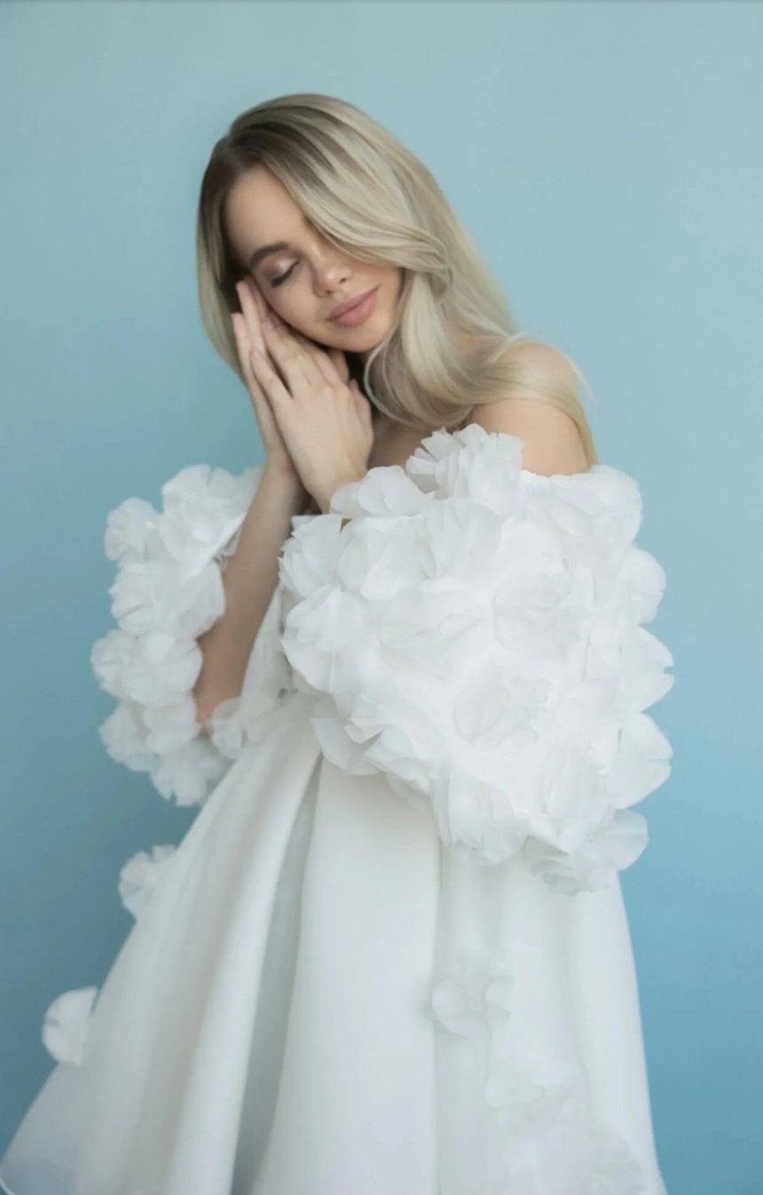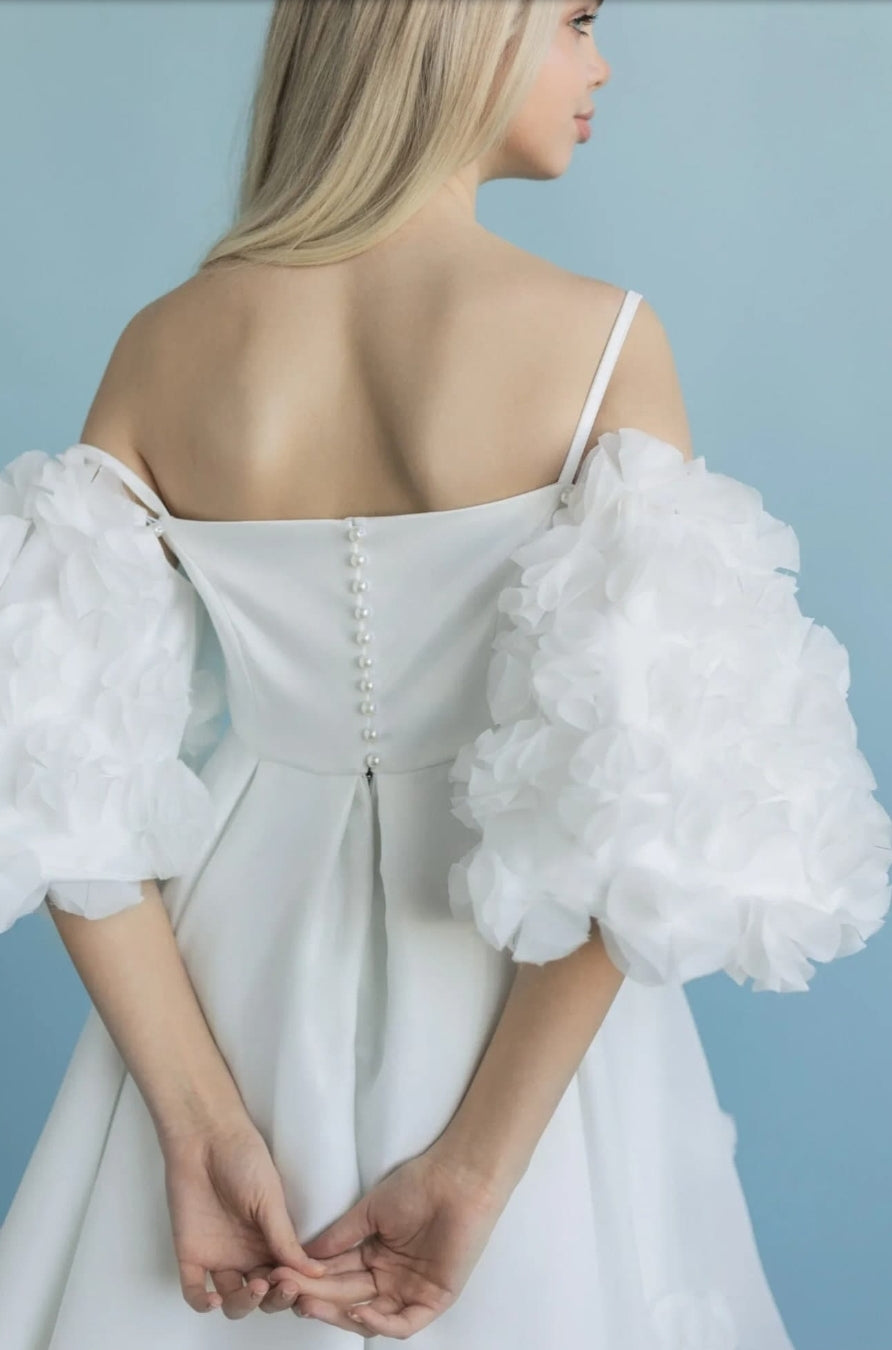 Detached 3D Romantic Floral Short Puff Sleeves.