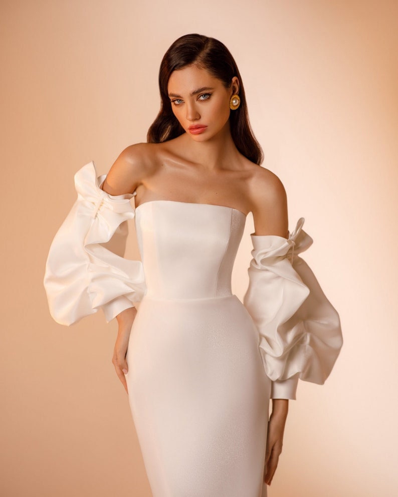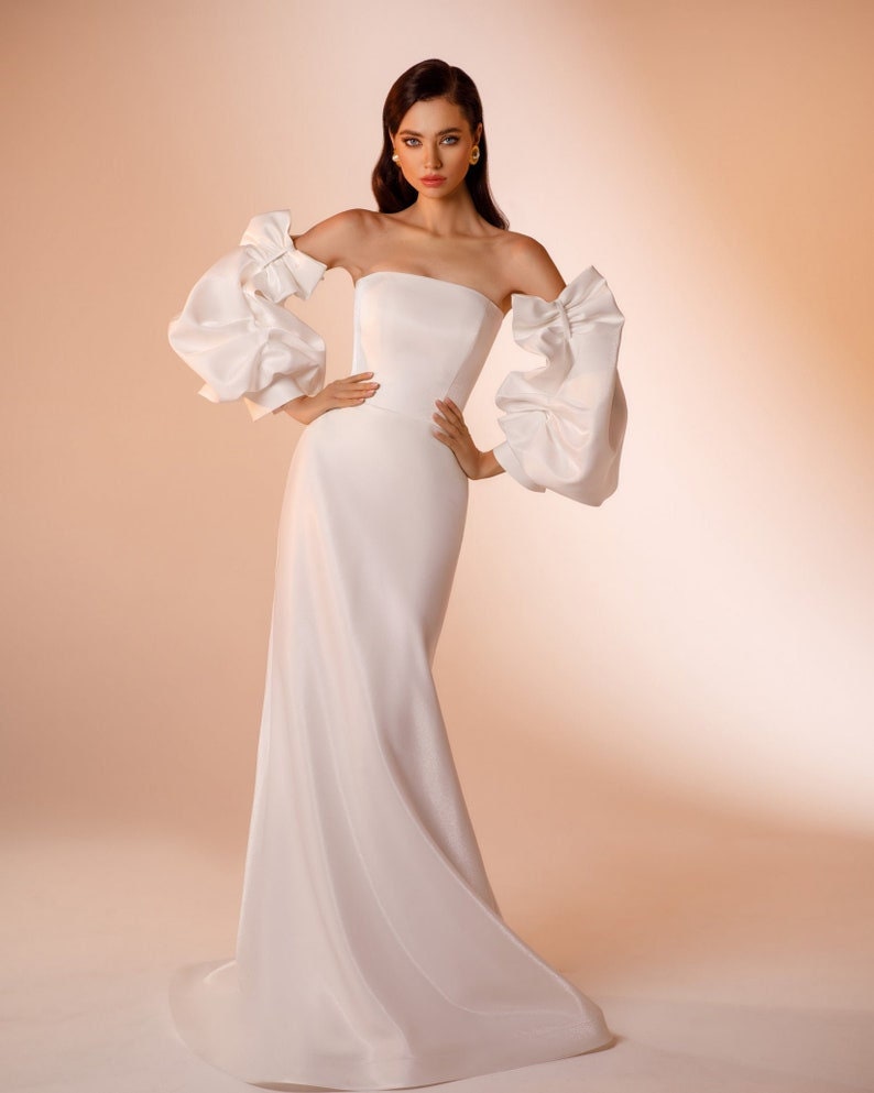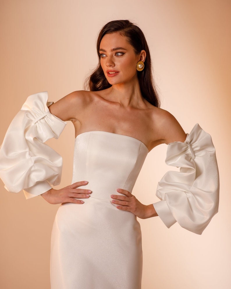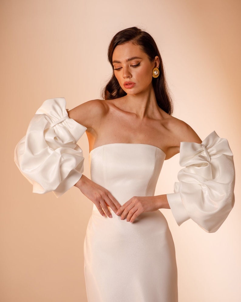 Detached Bicep Bow Illusion Ruched Sleeves.