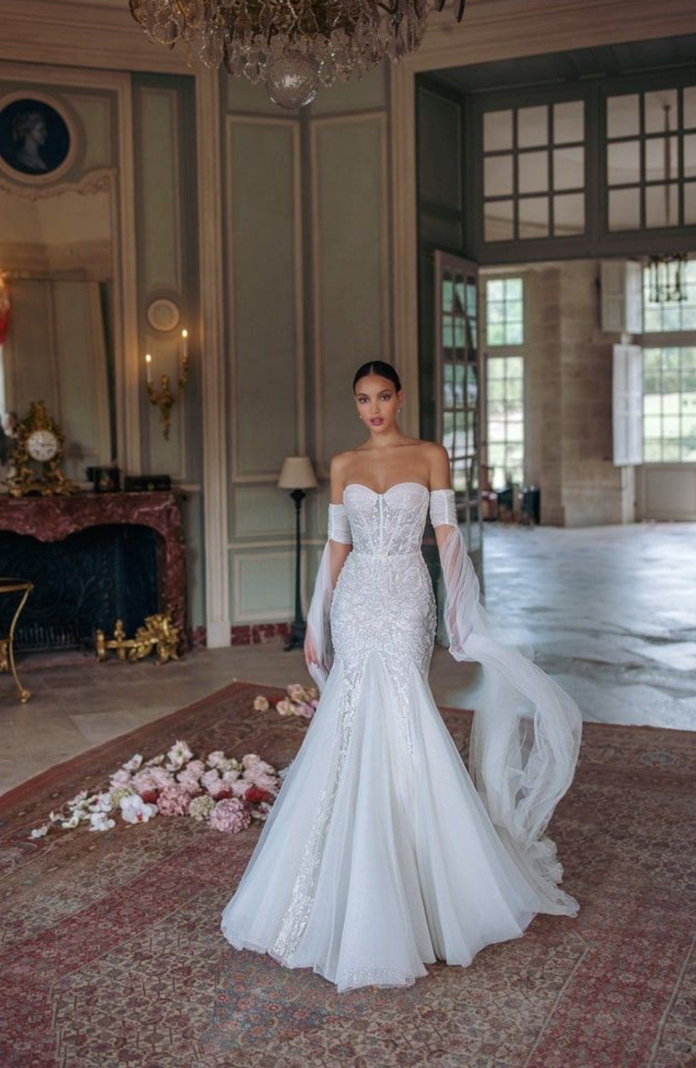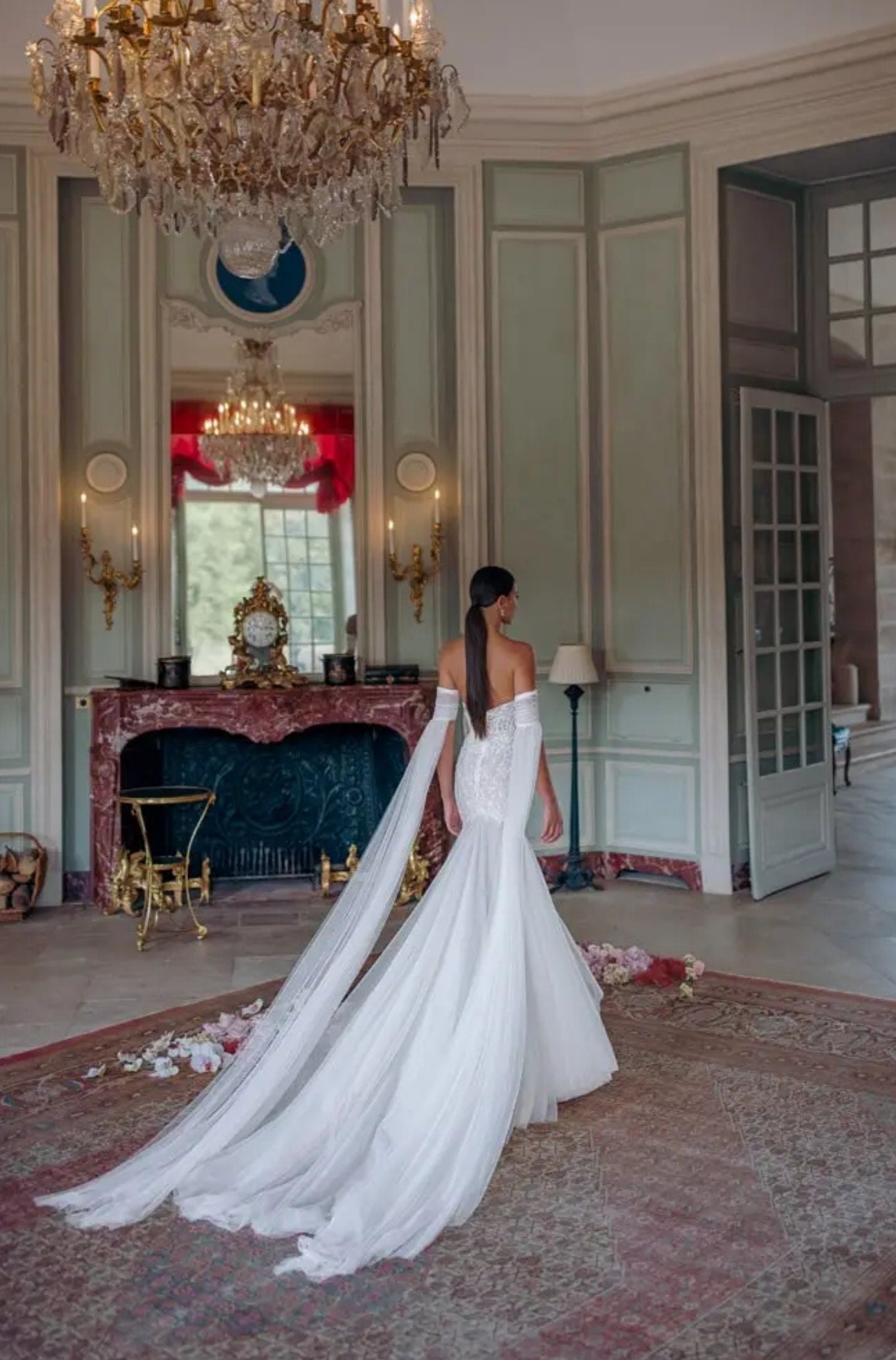Detached Bicep Cinched Trailing Floor Length Sleeves.