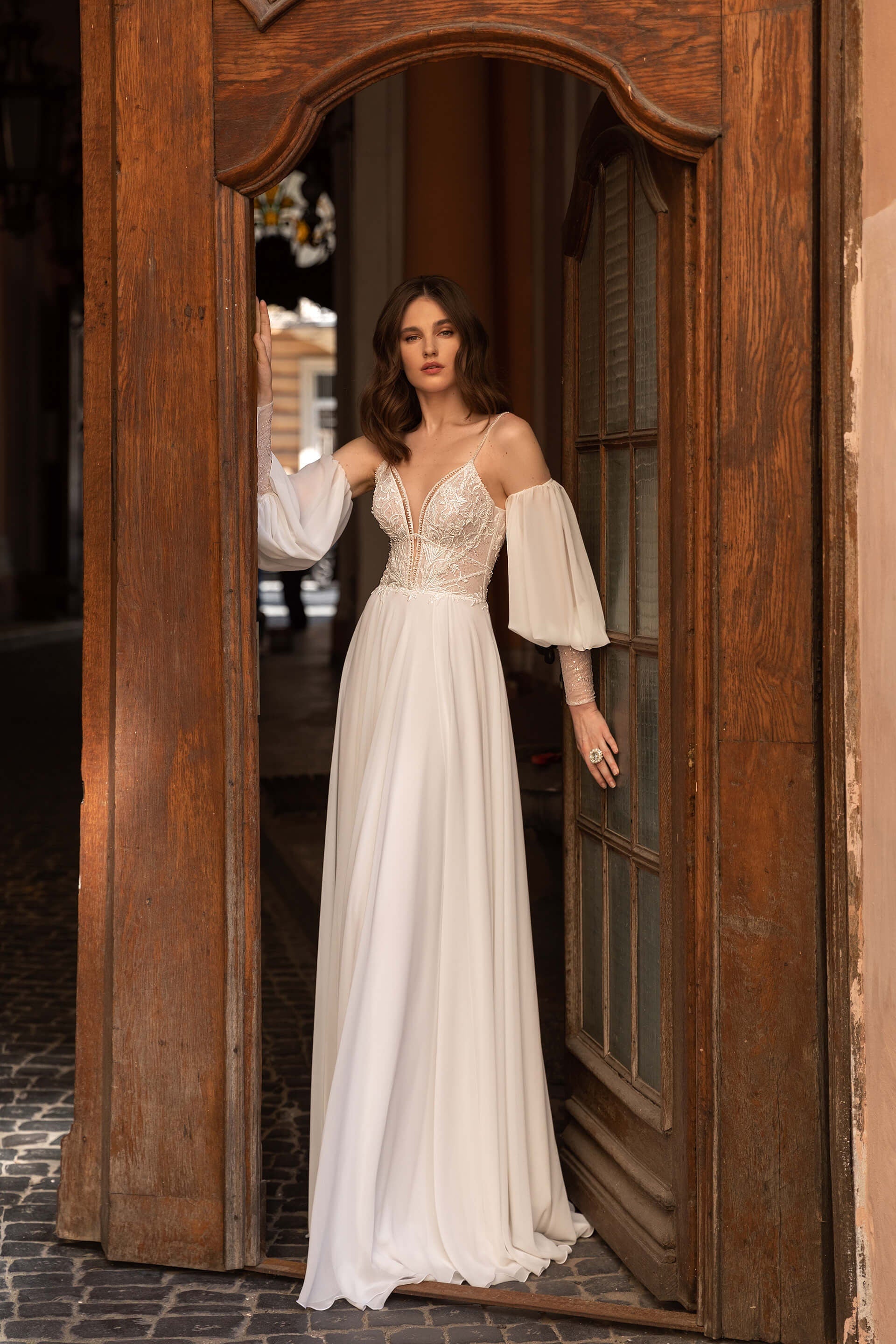Detached Bicep Dropped Balloon Soft Satin To Shimmering Slim Fit Sleeves.