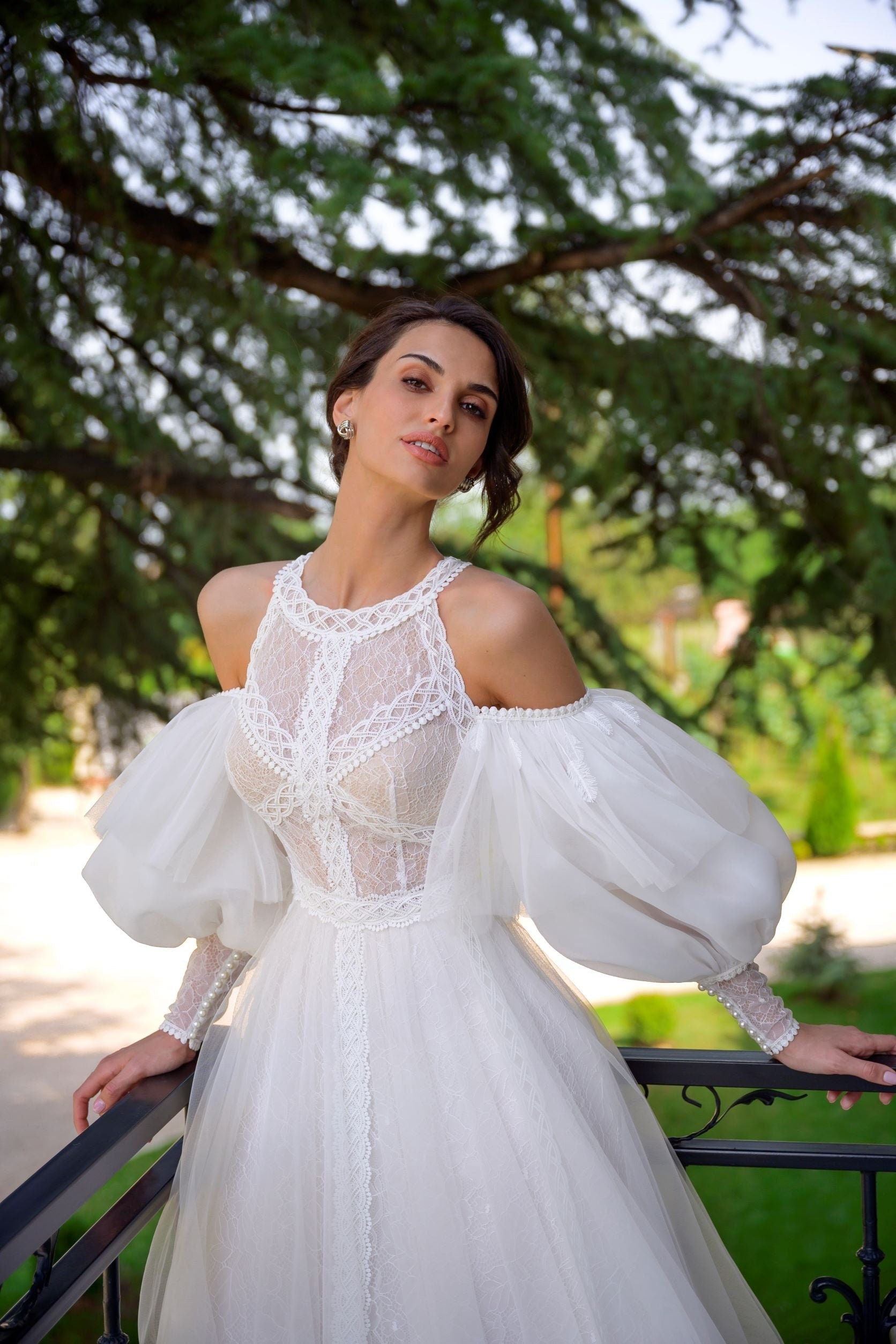 Detached Boho Feather, Lace & Pearl Vintage Style Sleeves.