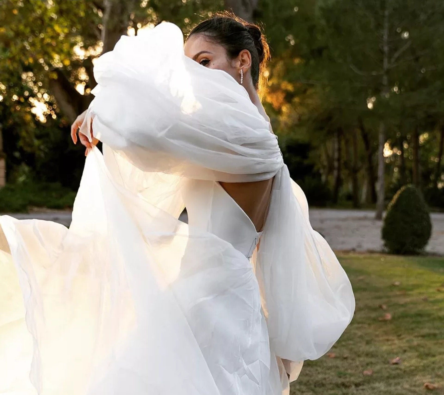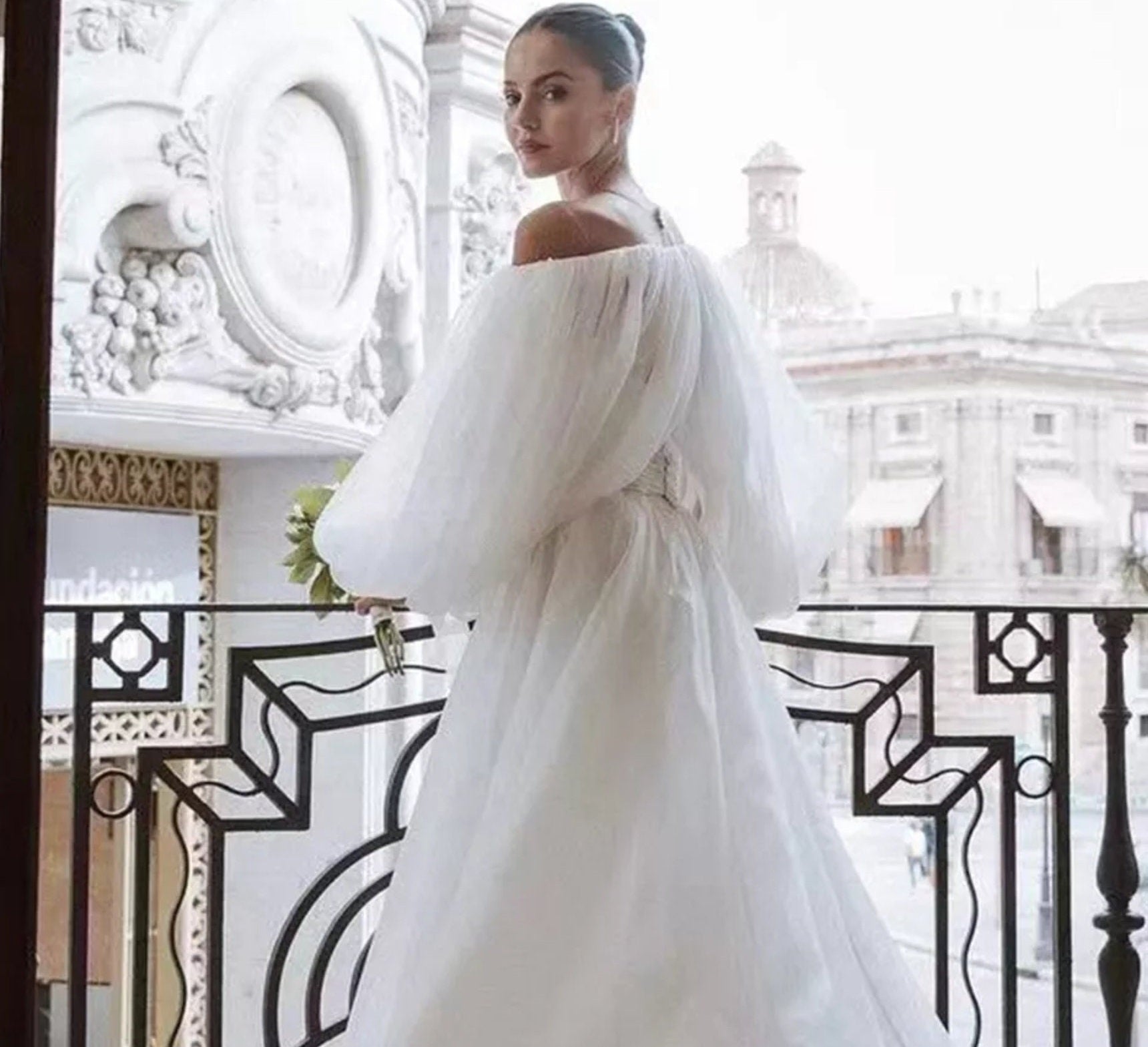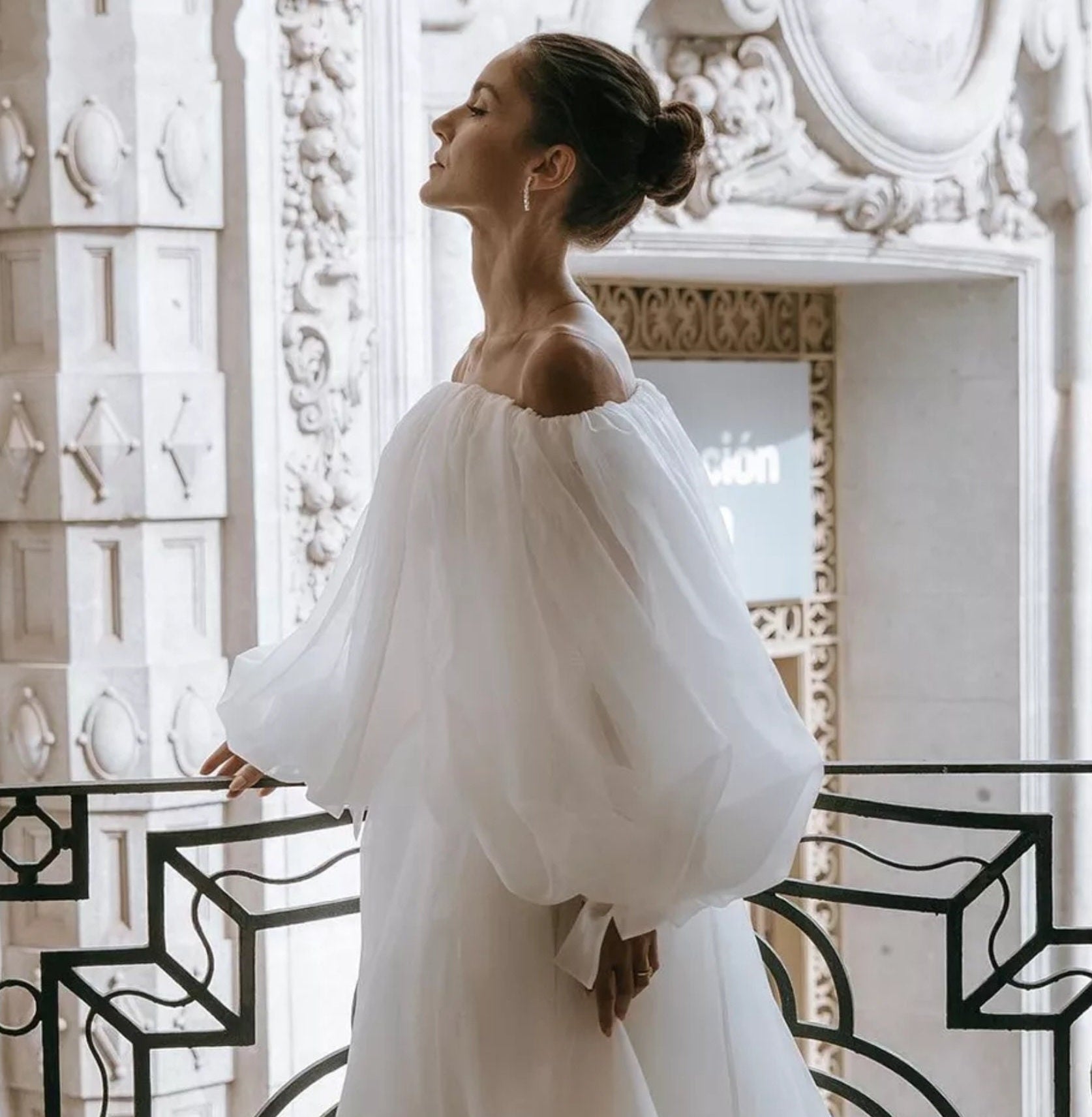 Detached Chiffon Boat Neck Puff Bolero Sleeves.
