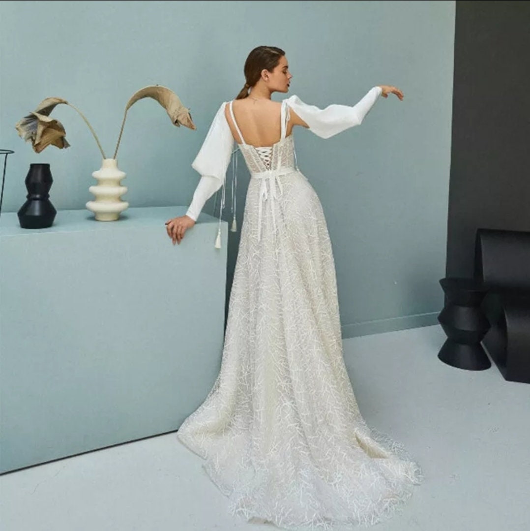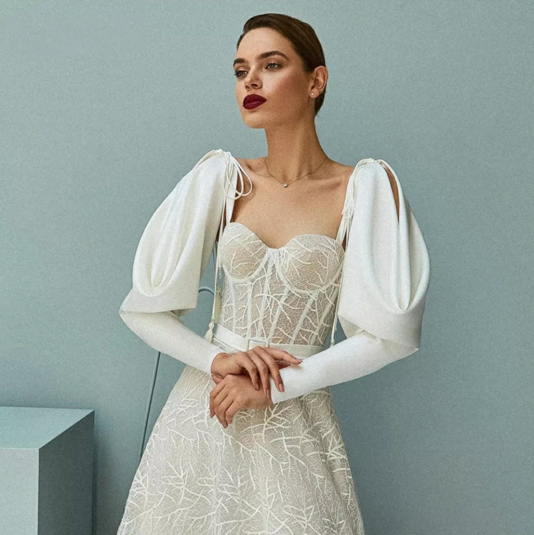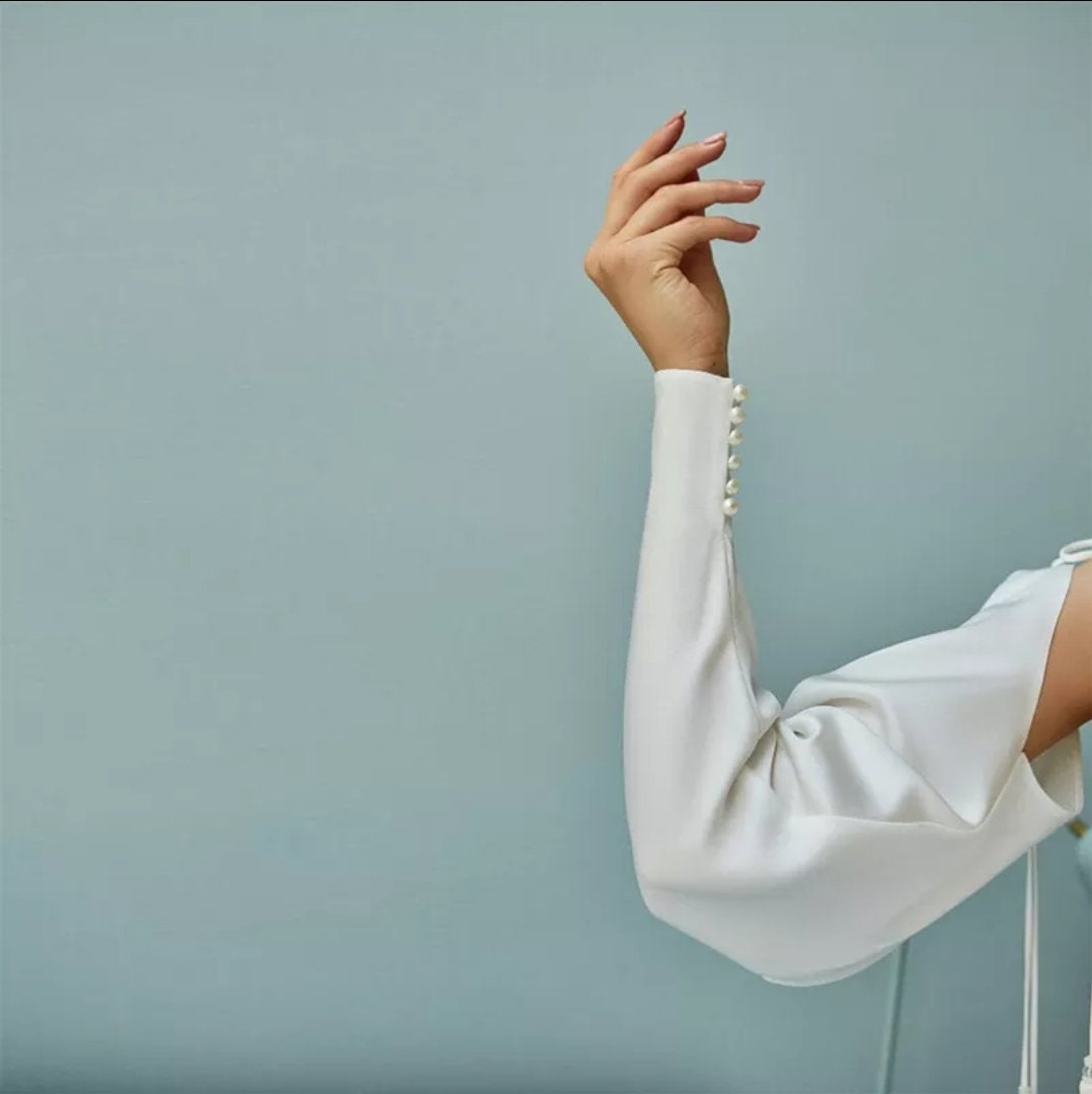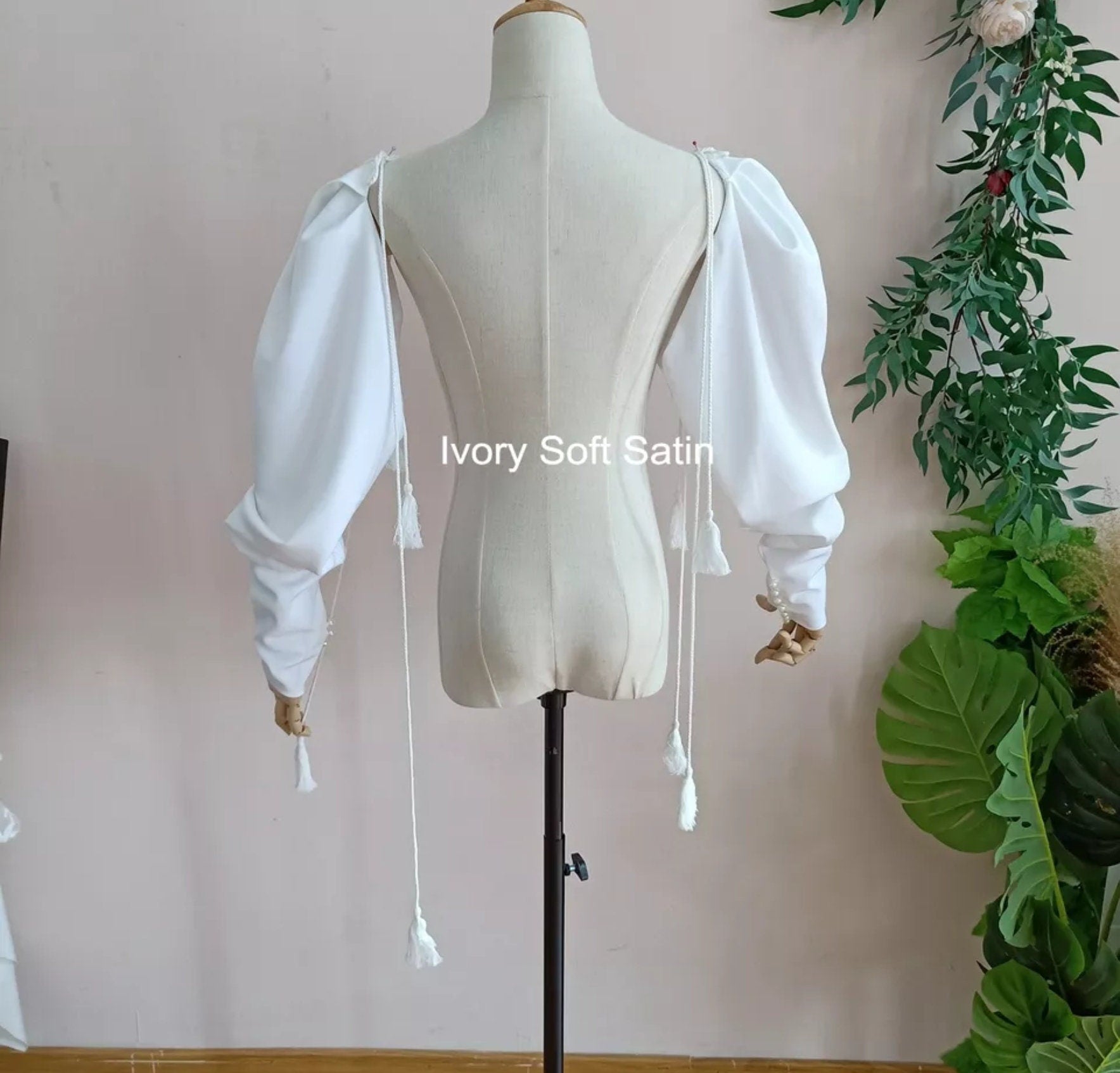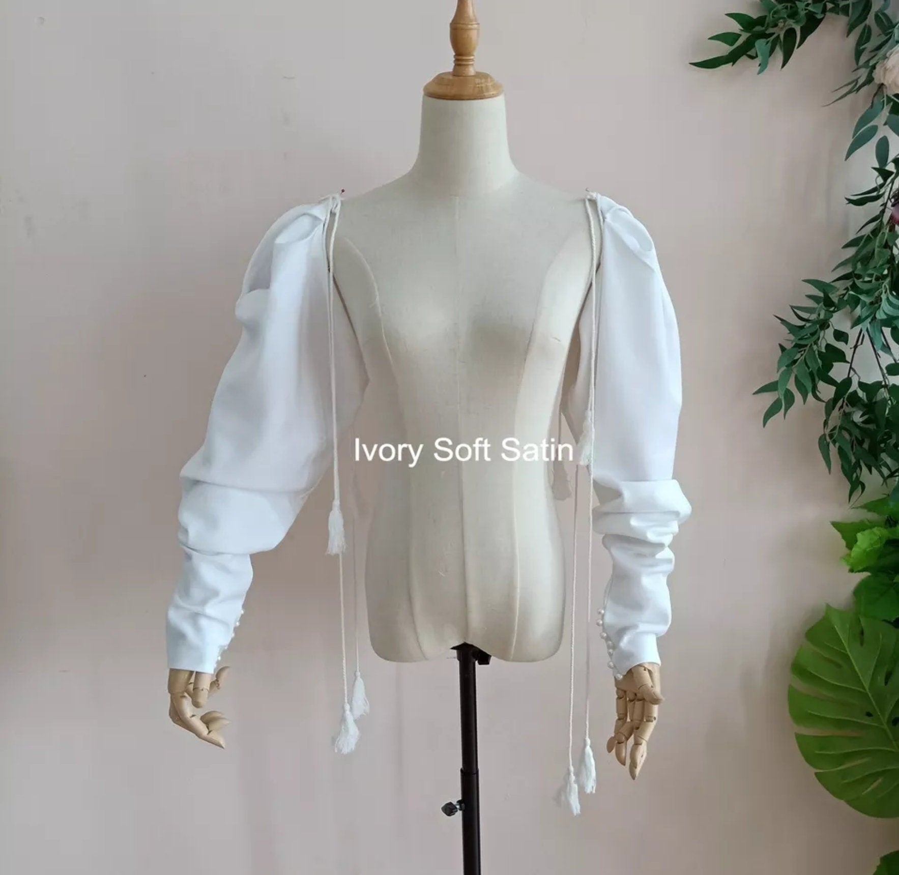 Detached Crepe Soft Satin Leg Of Mutton Vintage Key Hole & Ribbon Full Sleeves.