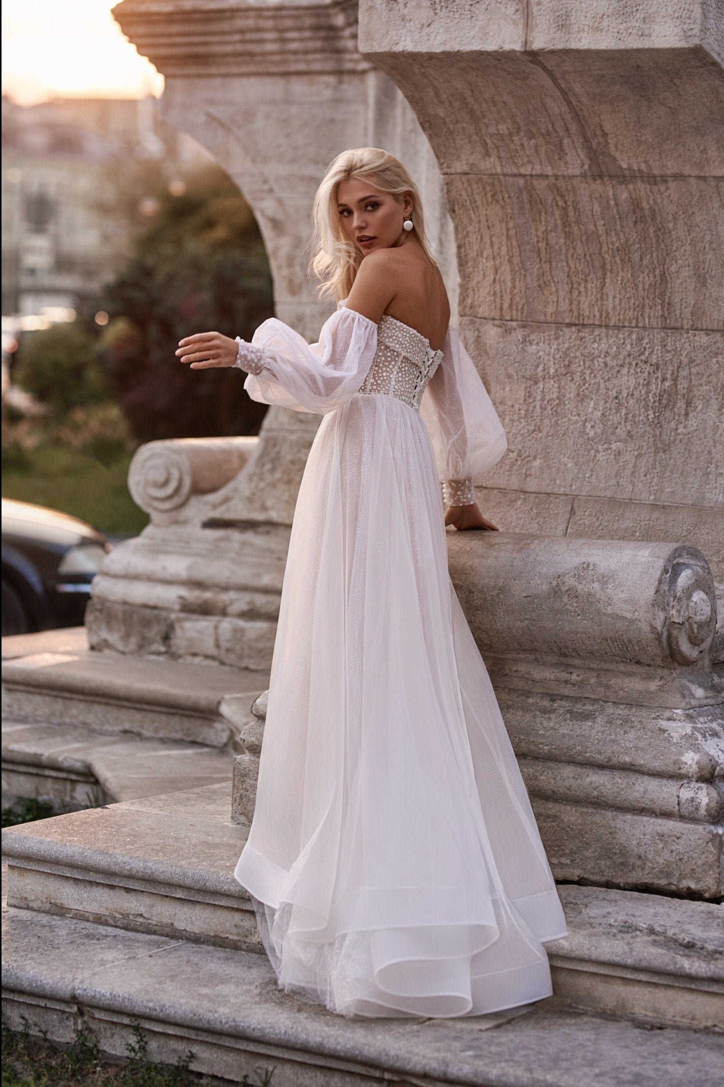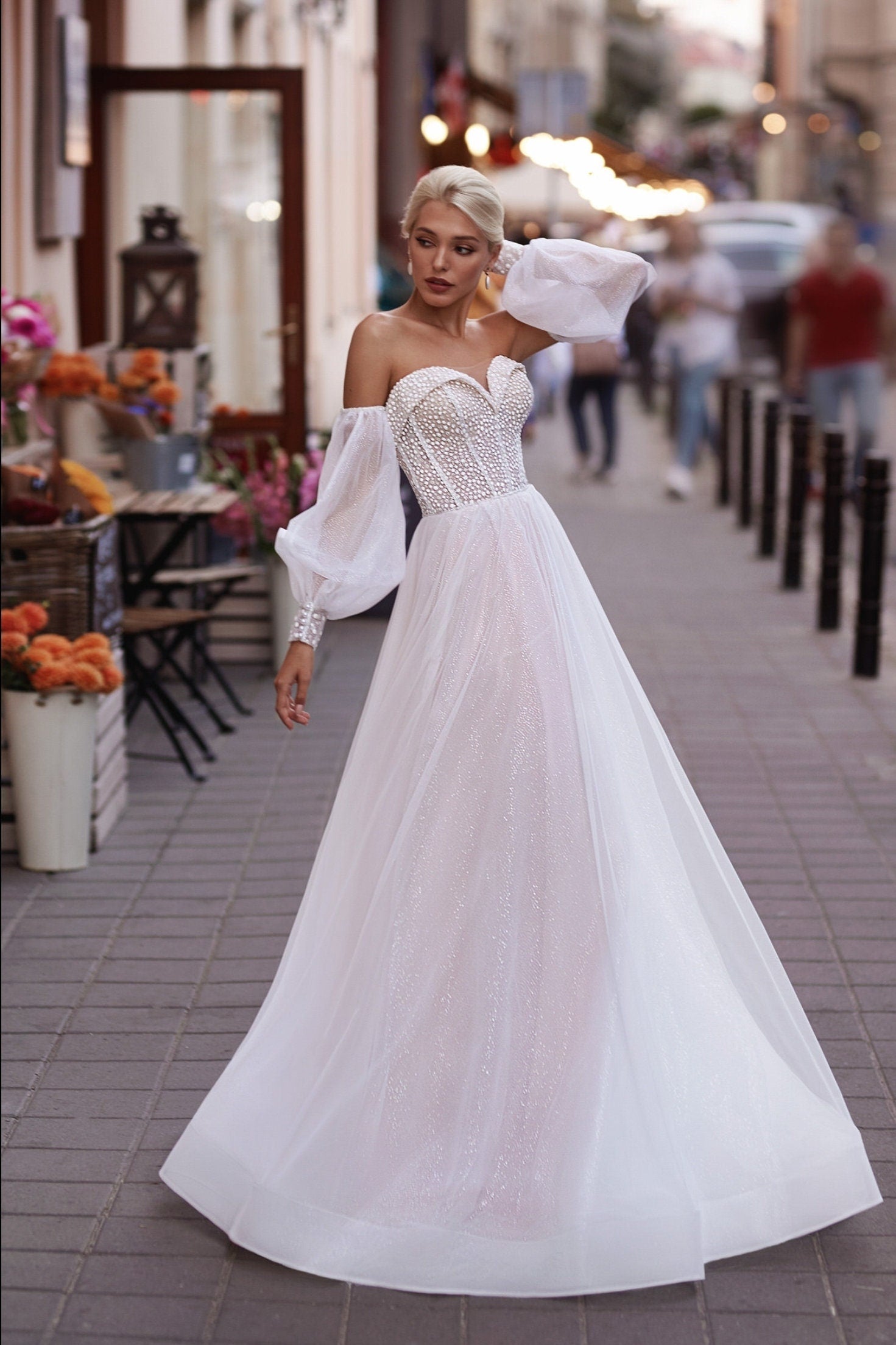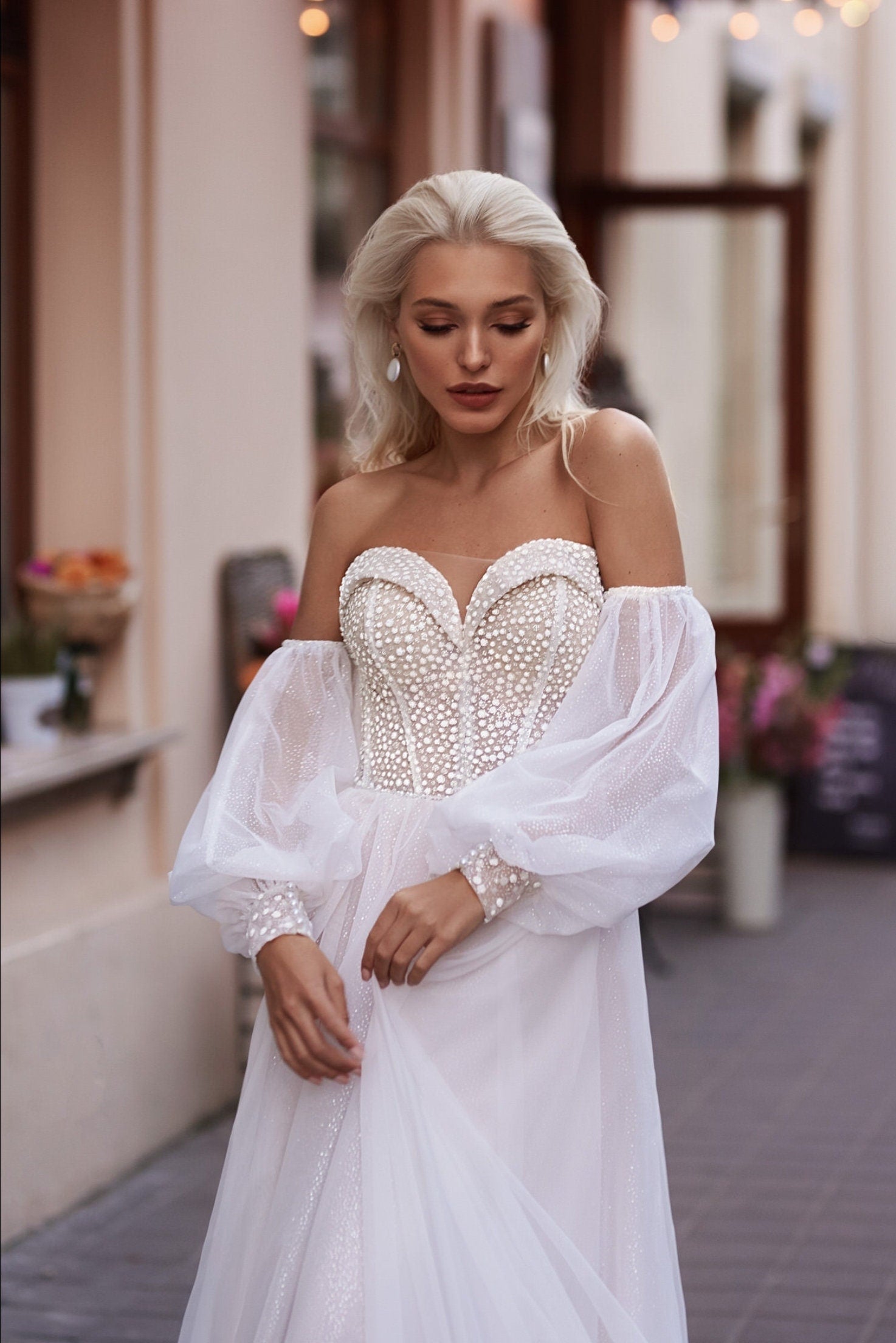 Detached Dotted Shimmer & Beaded Pearl Sleeves.