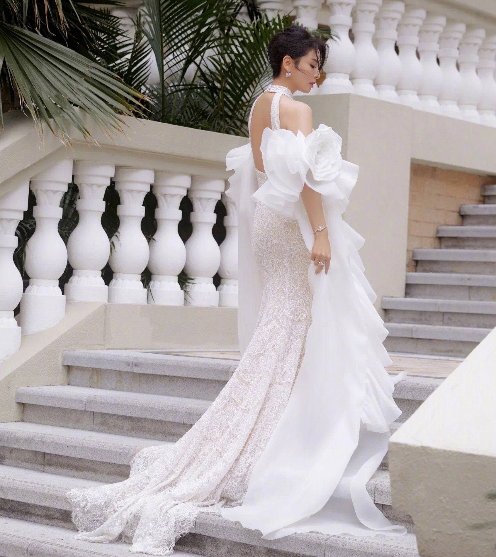 Detached Dramatic Beautiful Satin Organza Ruffled Oversized Floor Length Flower Bicep Sleeves