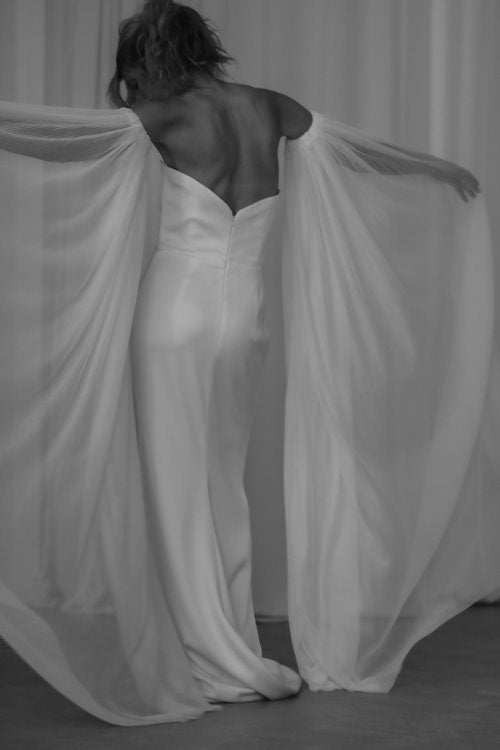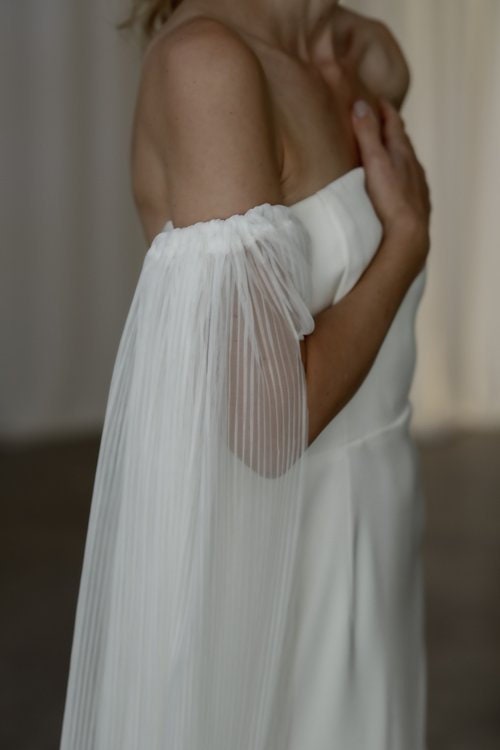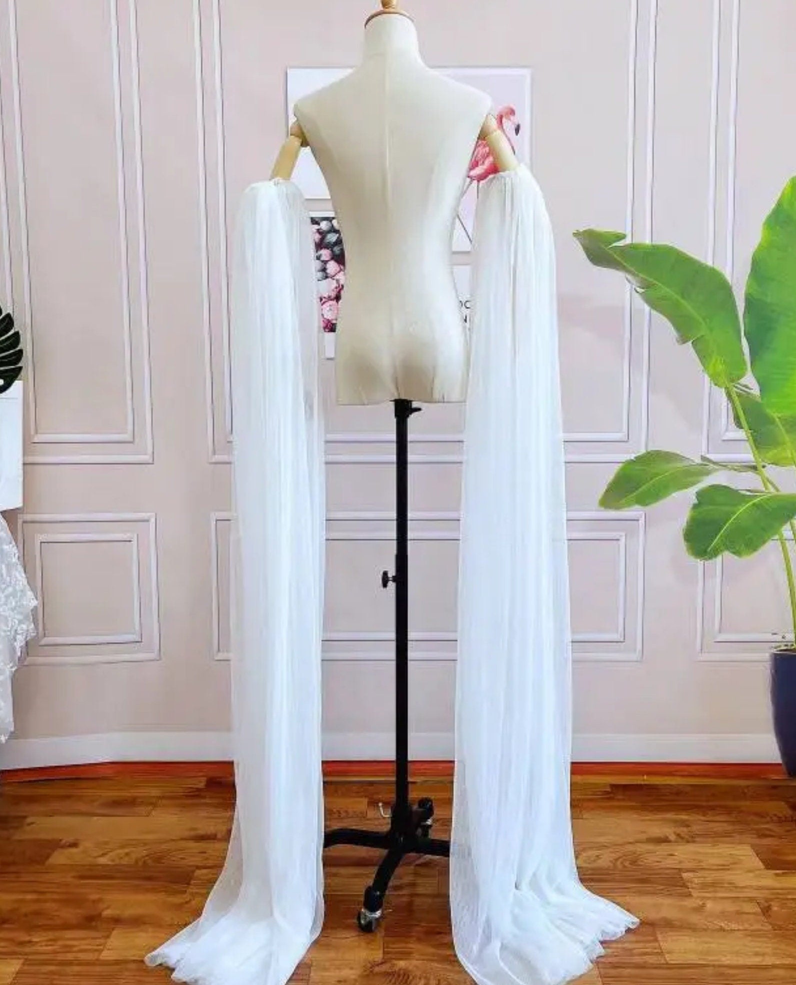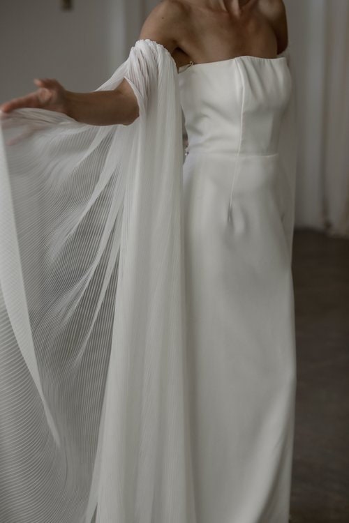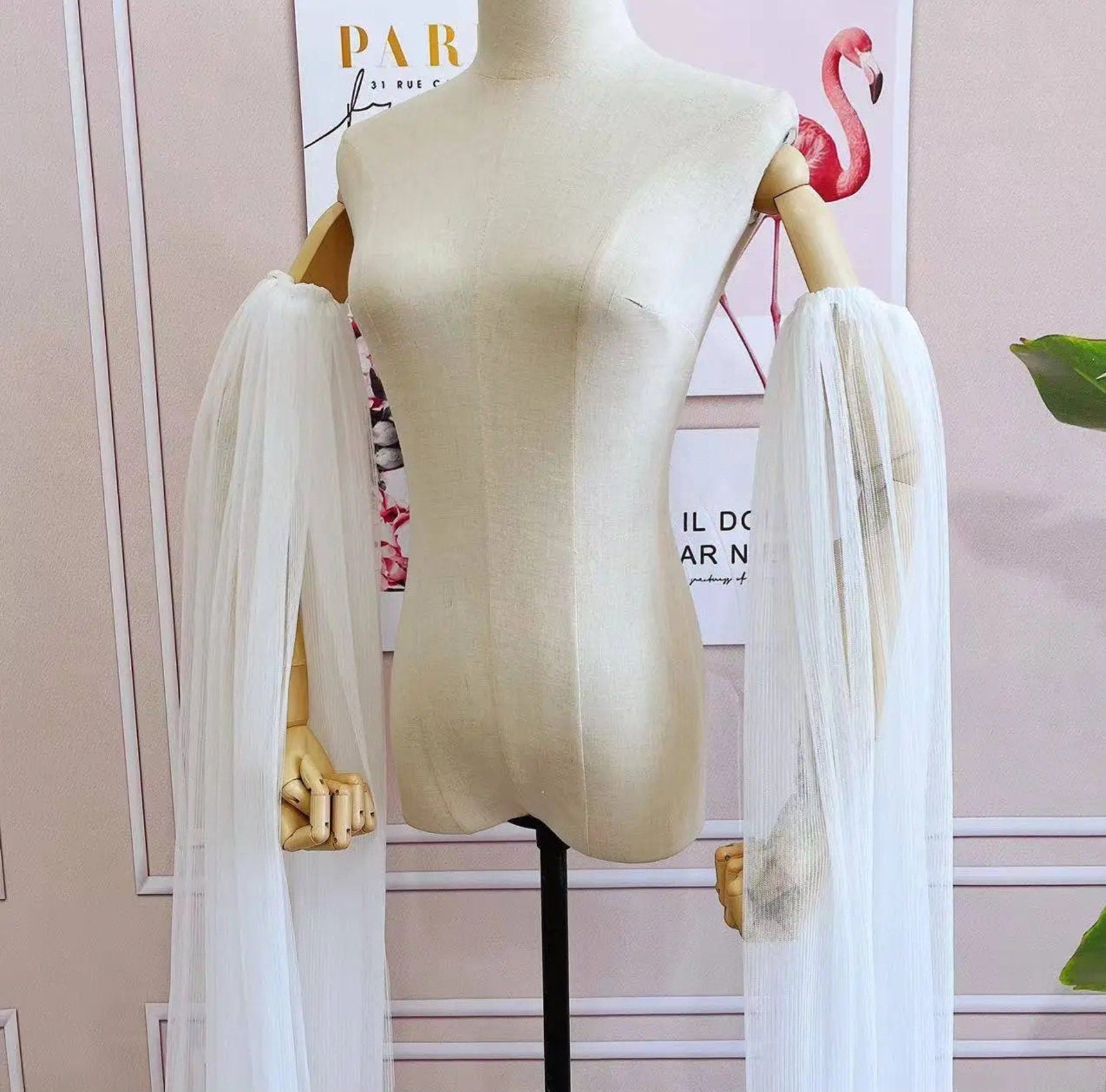 Detached Dramatic Floor Length Plisse Tulle Column Sleeves.