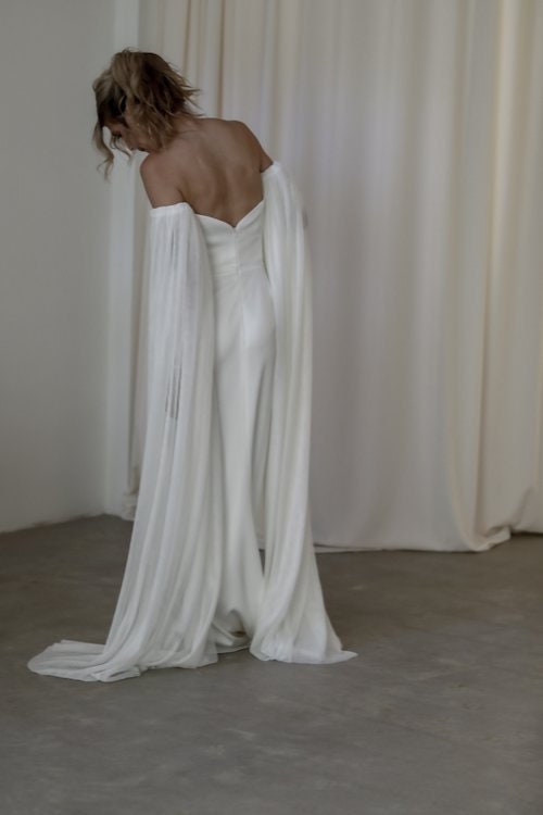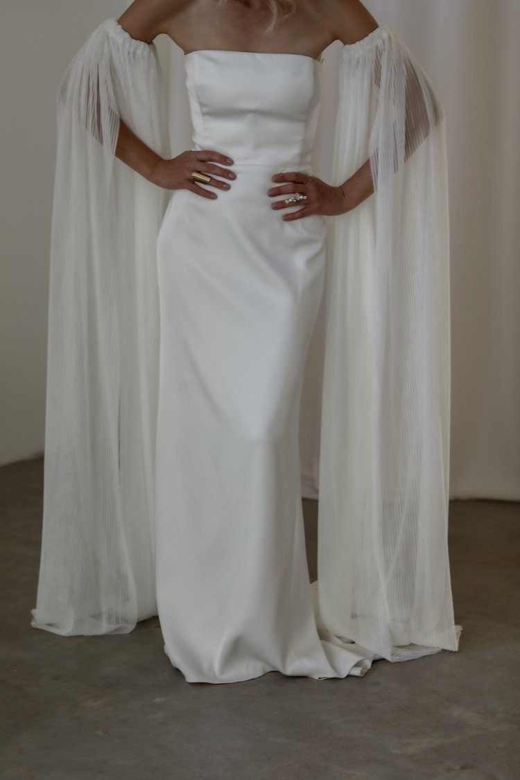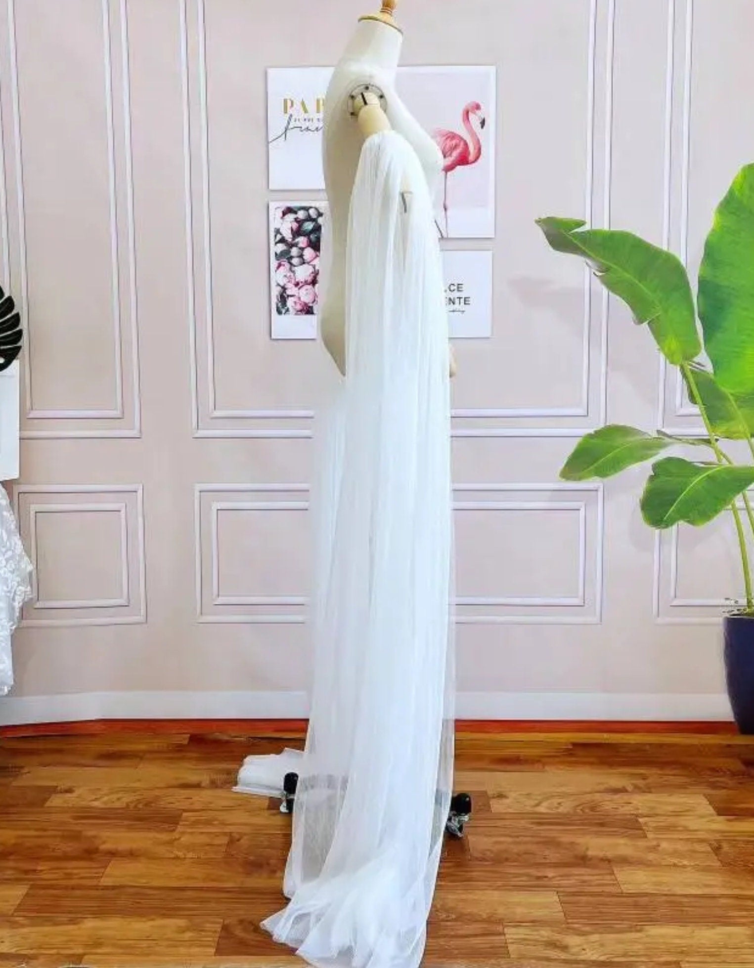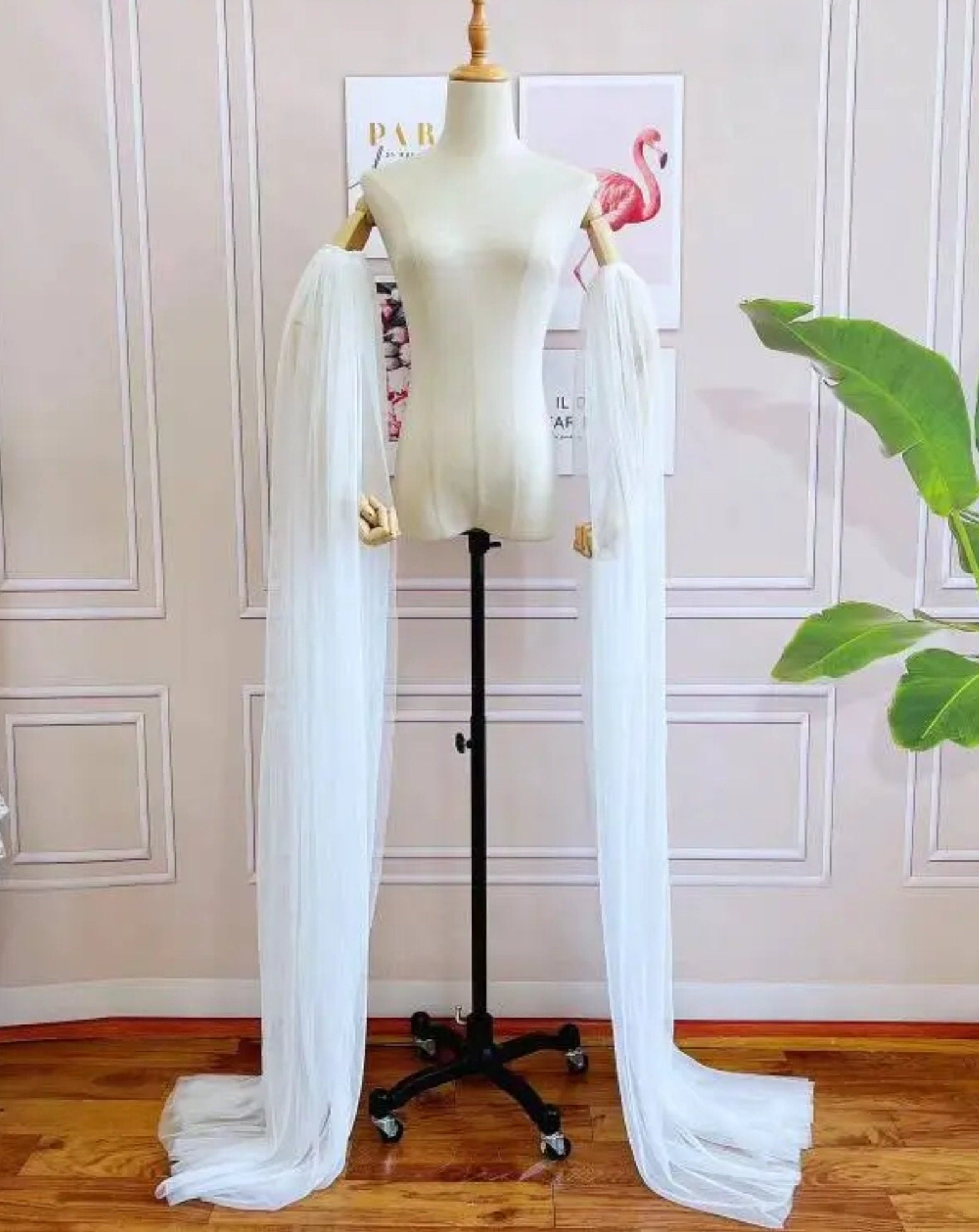 Detached Dramatic Floor Length Plisse Tulle Column Sleeves.
