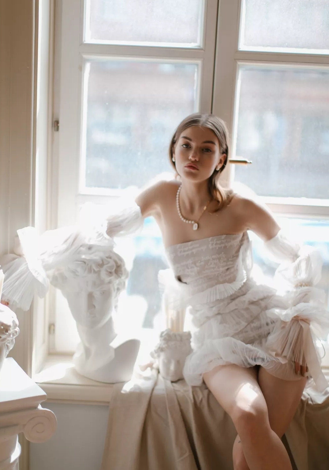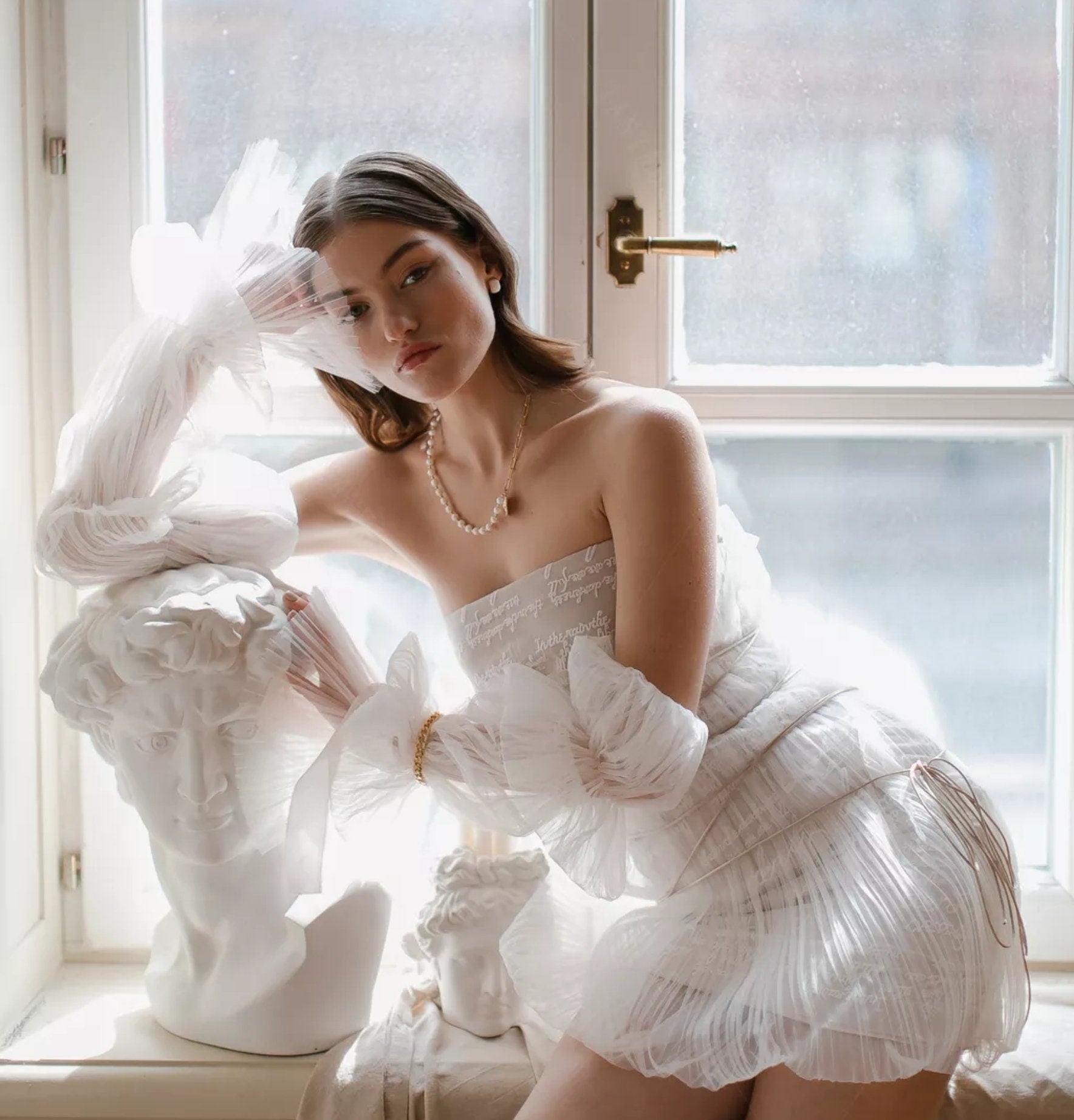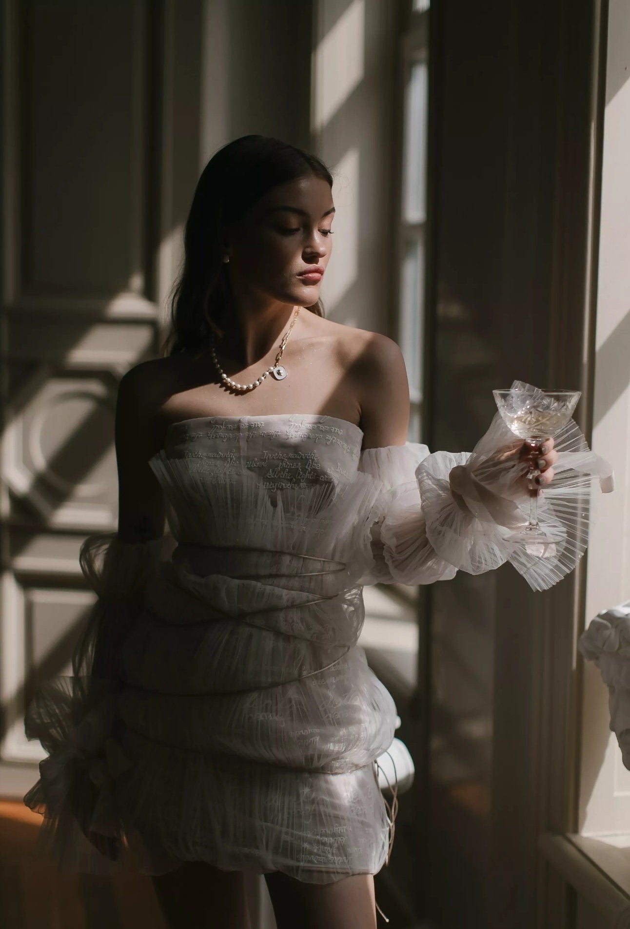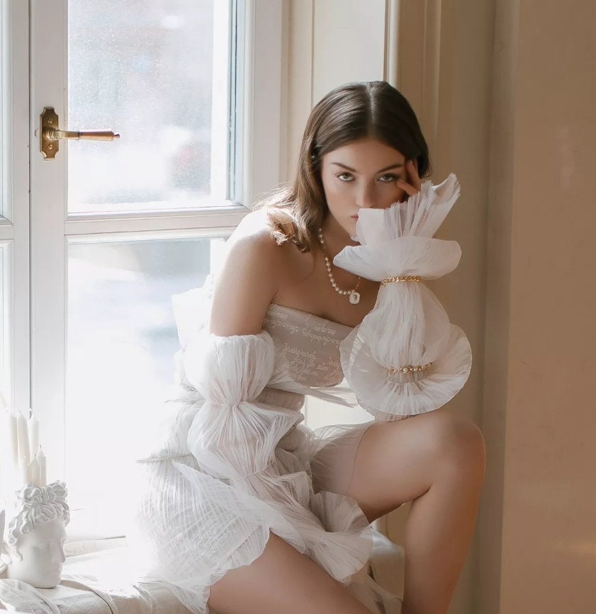 Detached Dramatic Plisse Tulle Sectioned Irregular Sleeves.