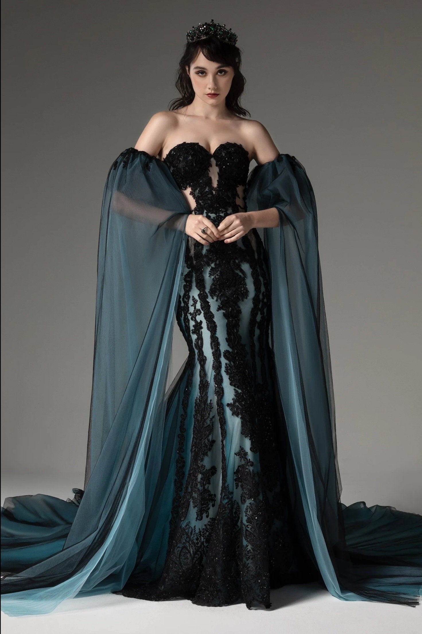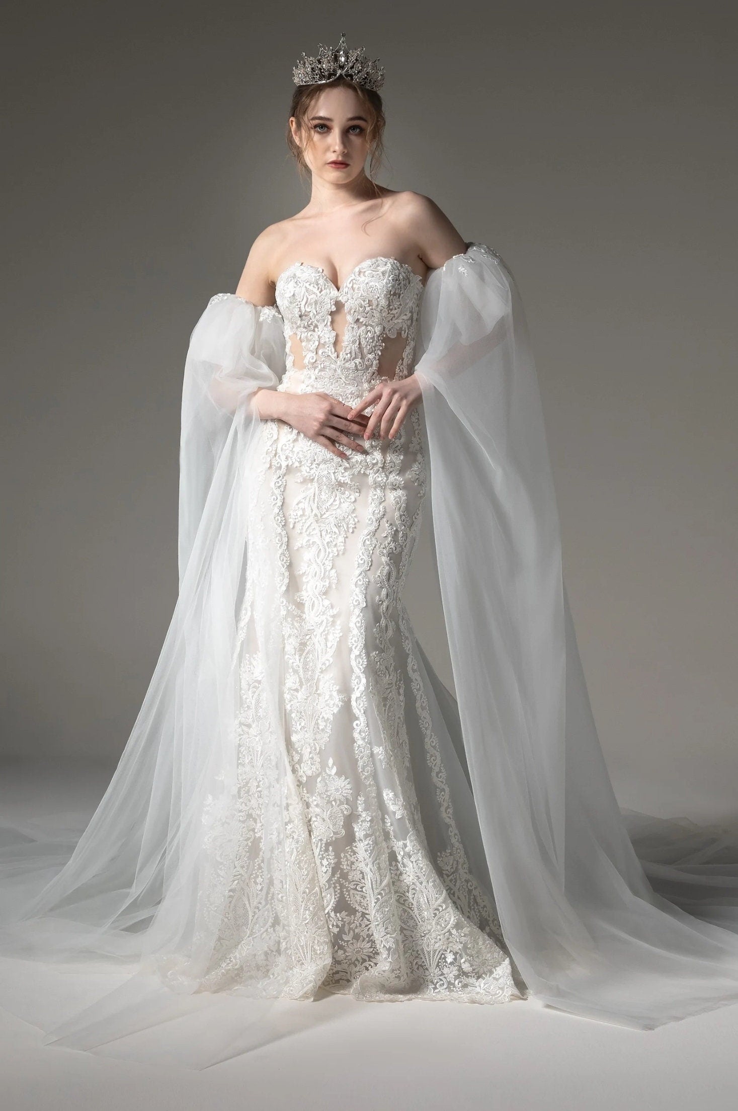 Detached Dramatic Sequin Appliqué Bicep Floor Length Sleeves.