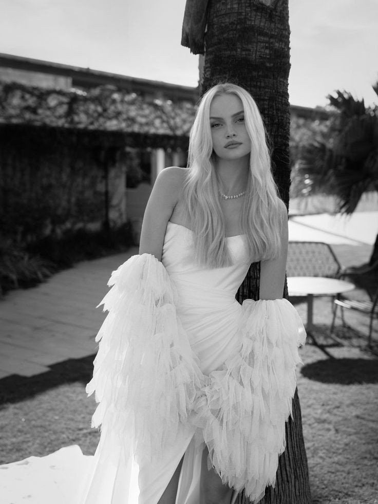Detached Dreamy Chiffon Tiered 3/4 Sleeve cape.