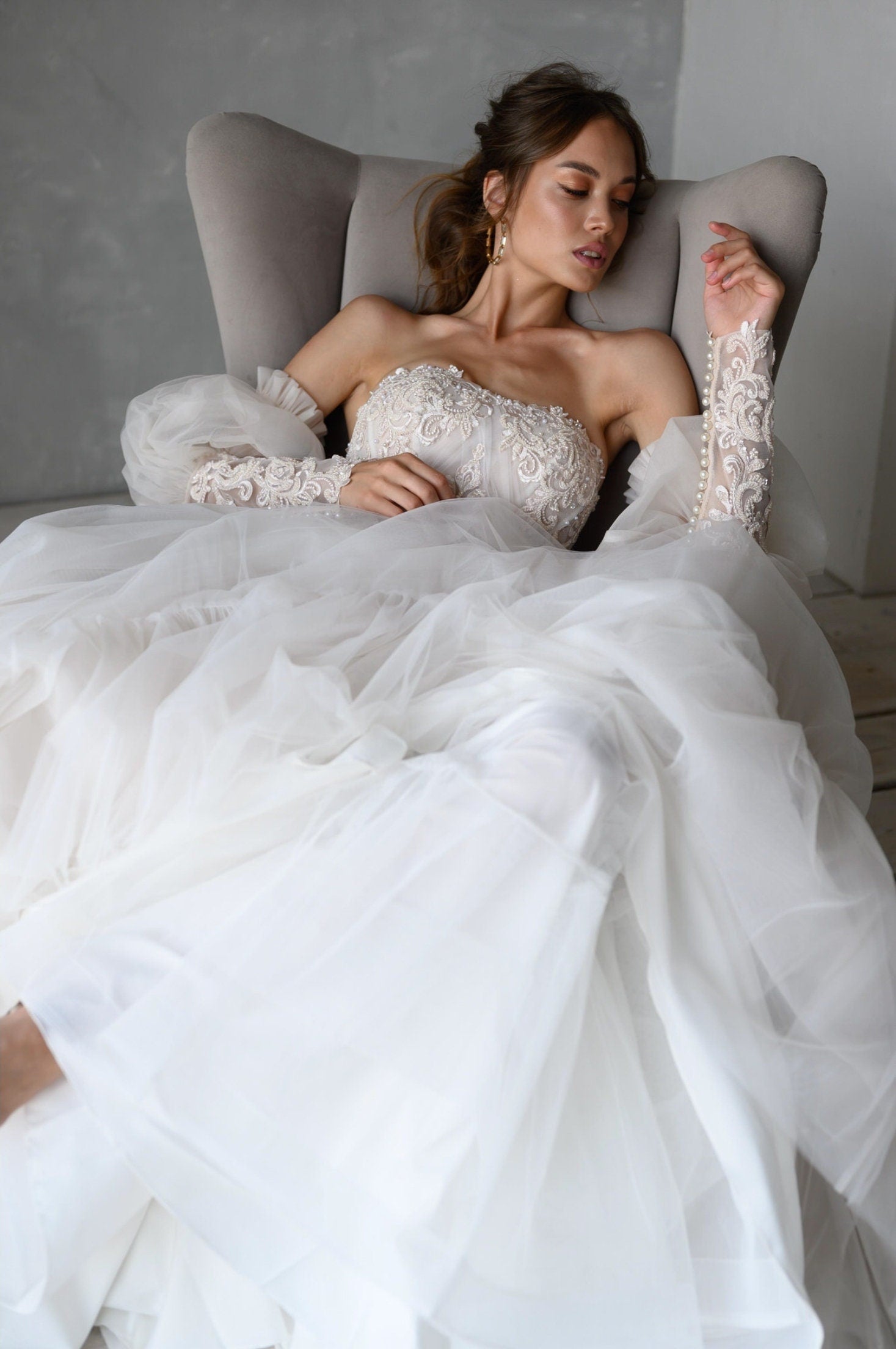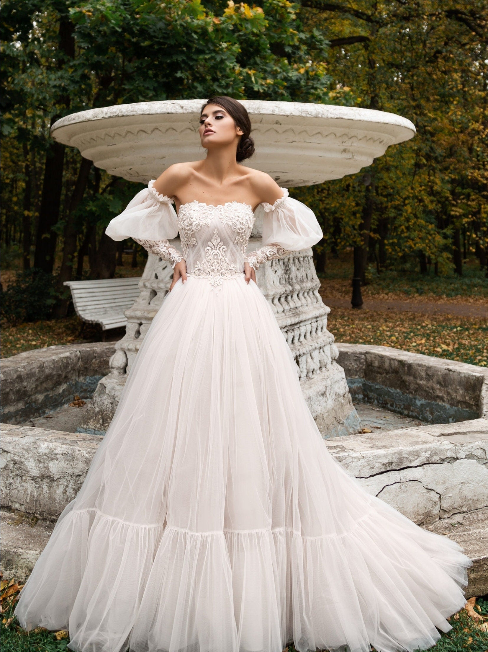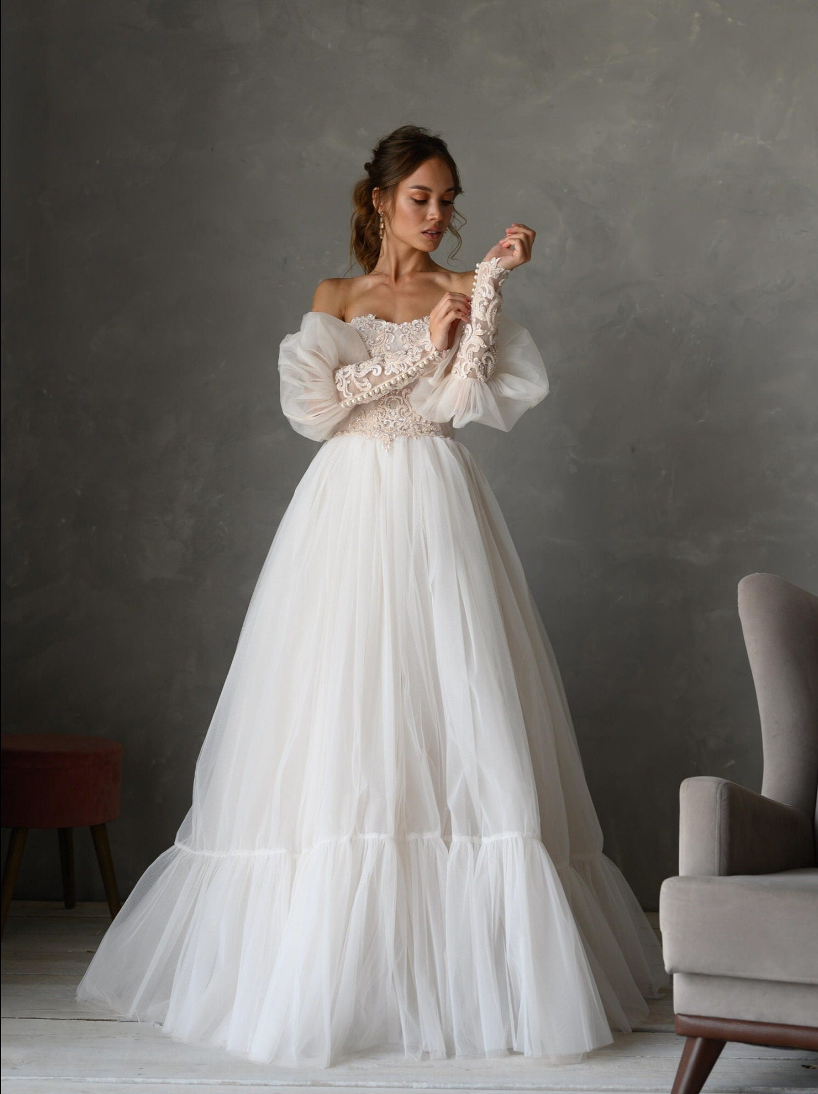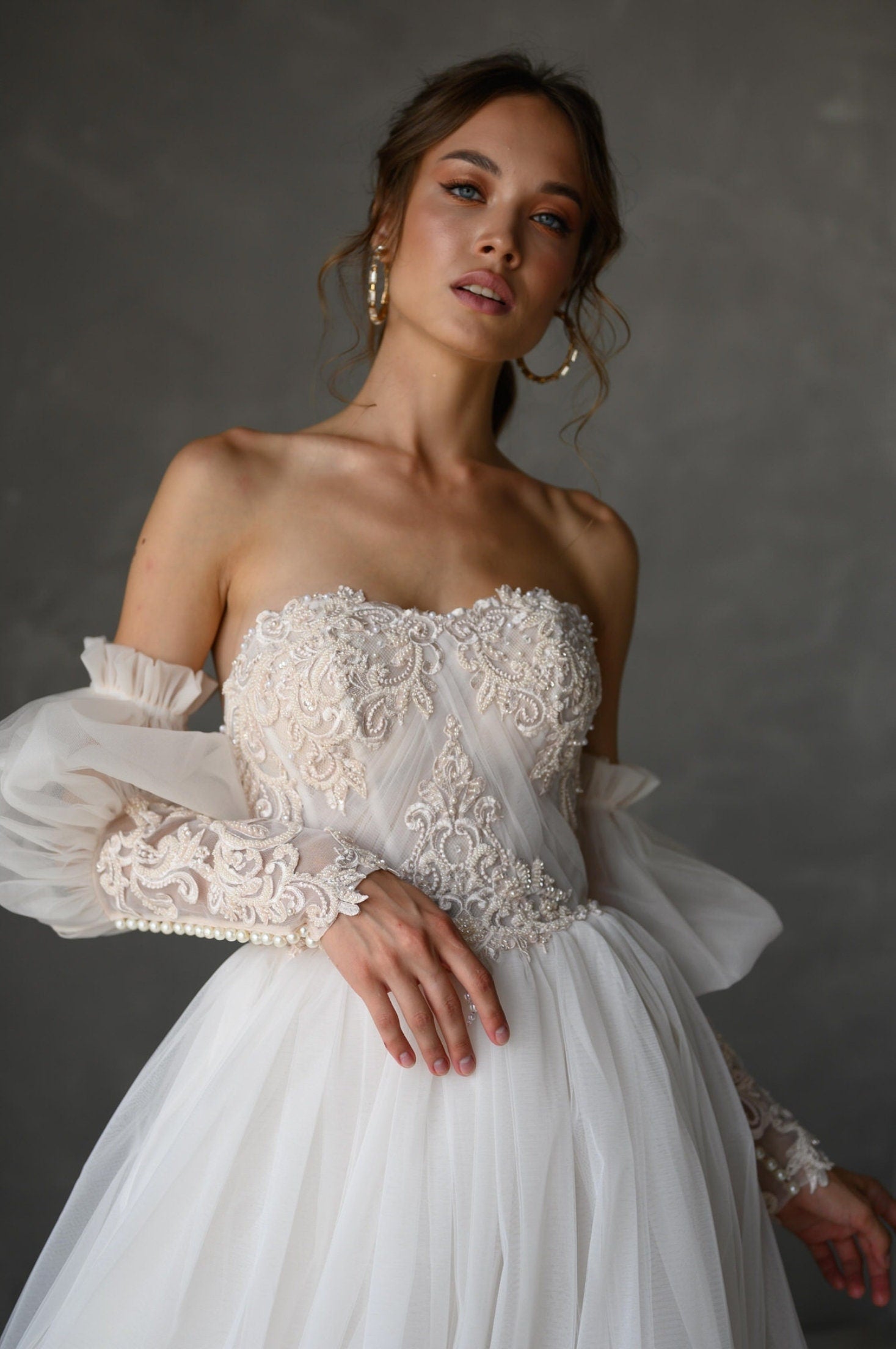 NOTE: Any floral beading/details/accents/lace/appliqués/embroidery MAY differ from original photo as this may depend on size and availability of materials.