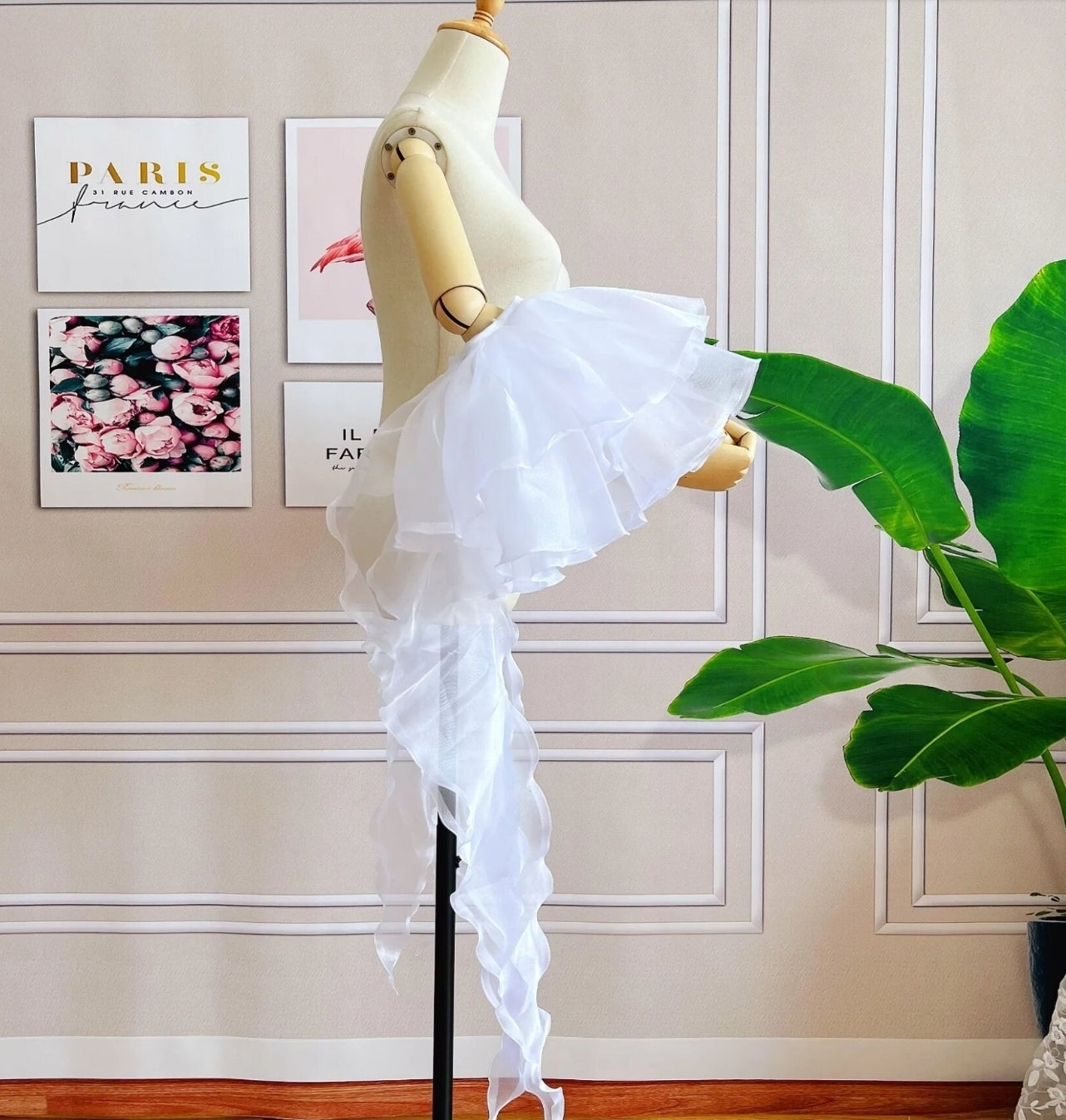 Detached Organza Ruffle Layered Sleeves With Short Train
