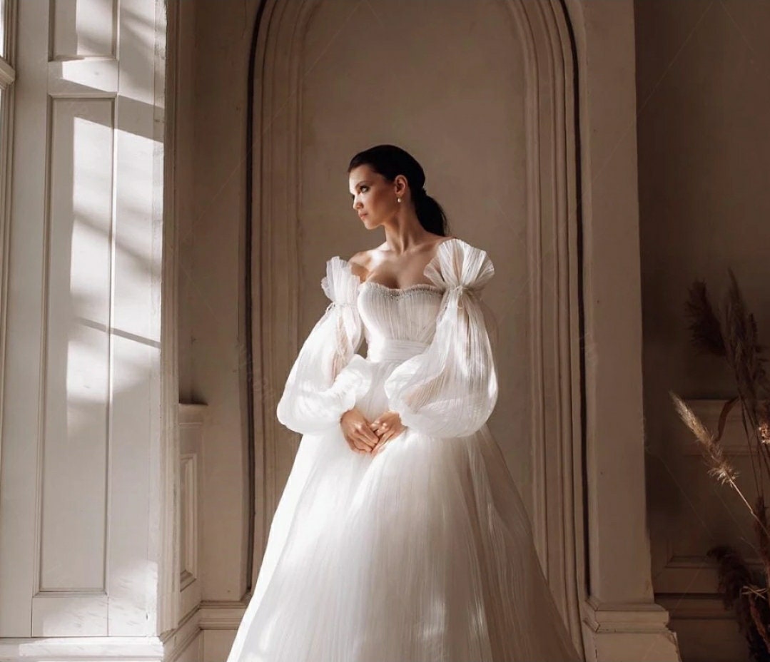Detached Plisse Tulle Detached Full Length Sleeves.