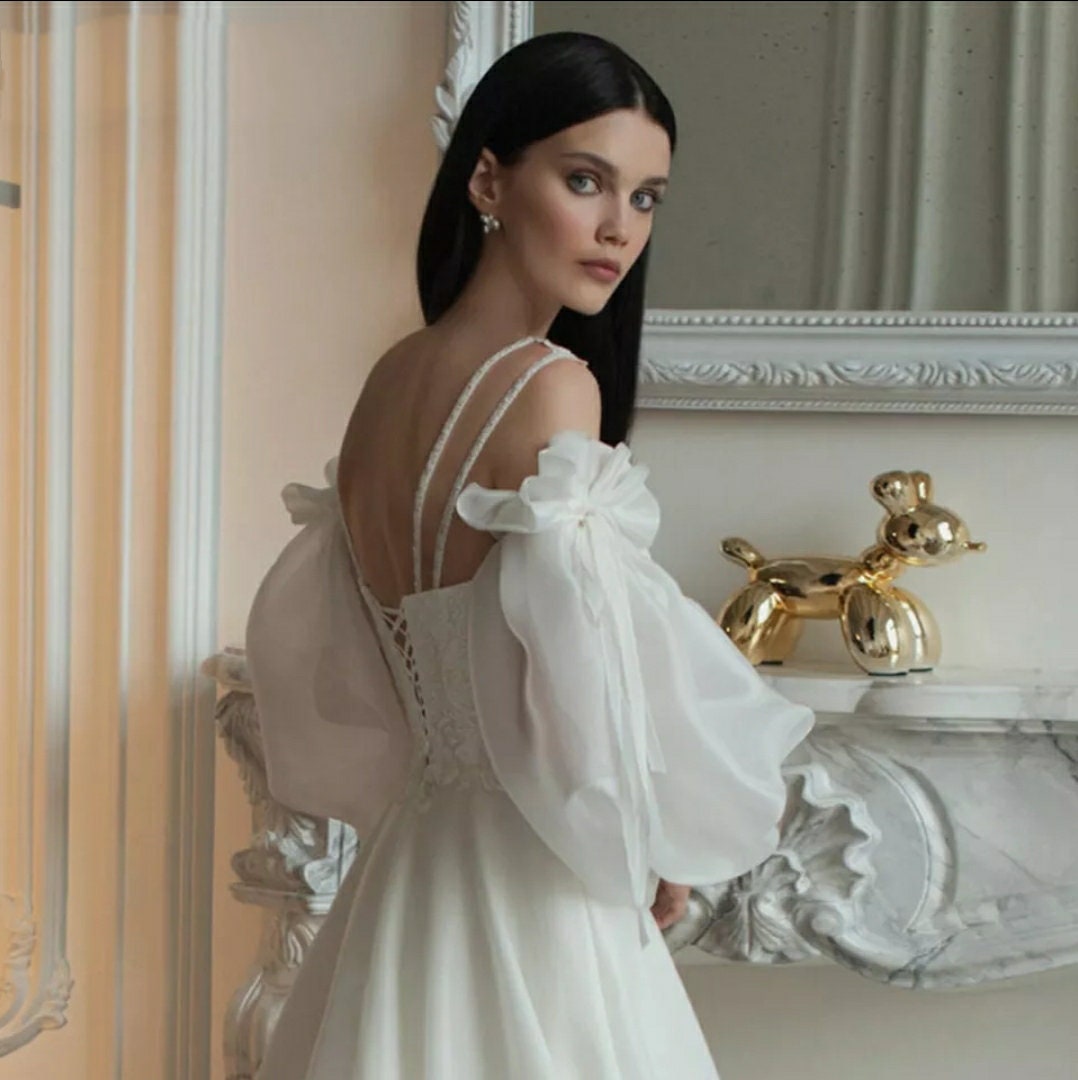 Ribbon & Bow Organza Lantern Detached Bridal Sleeves.