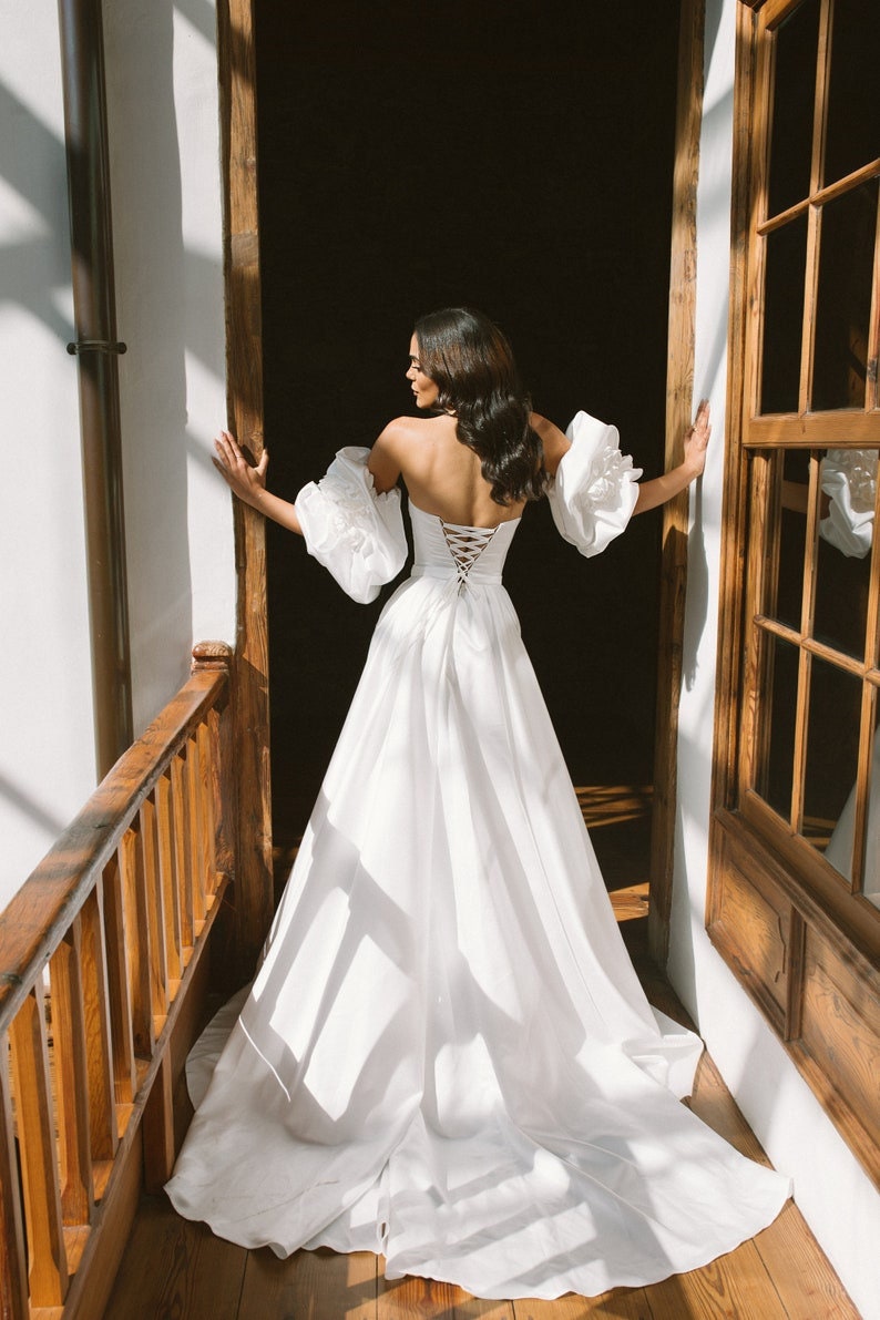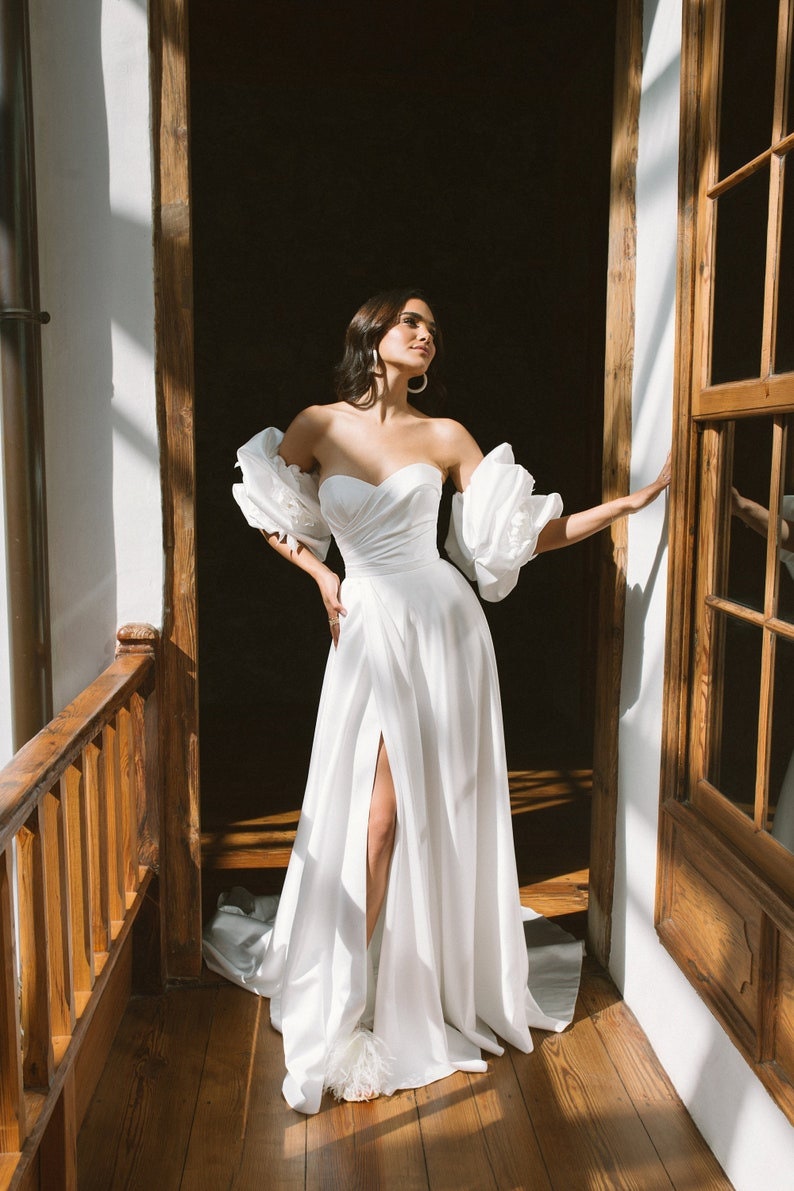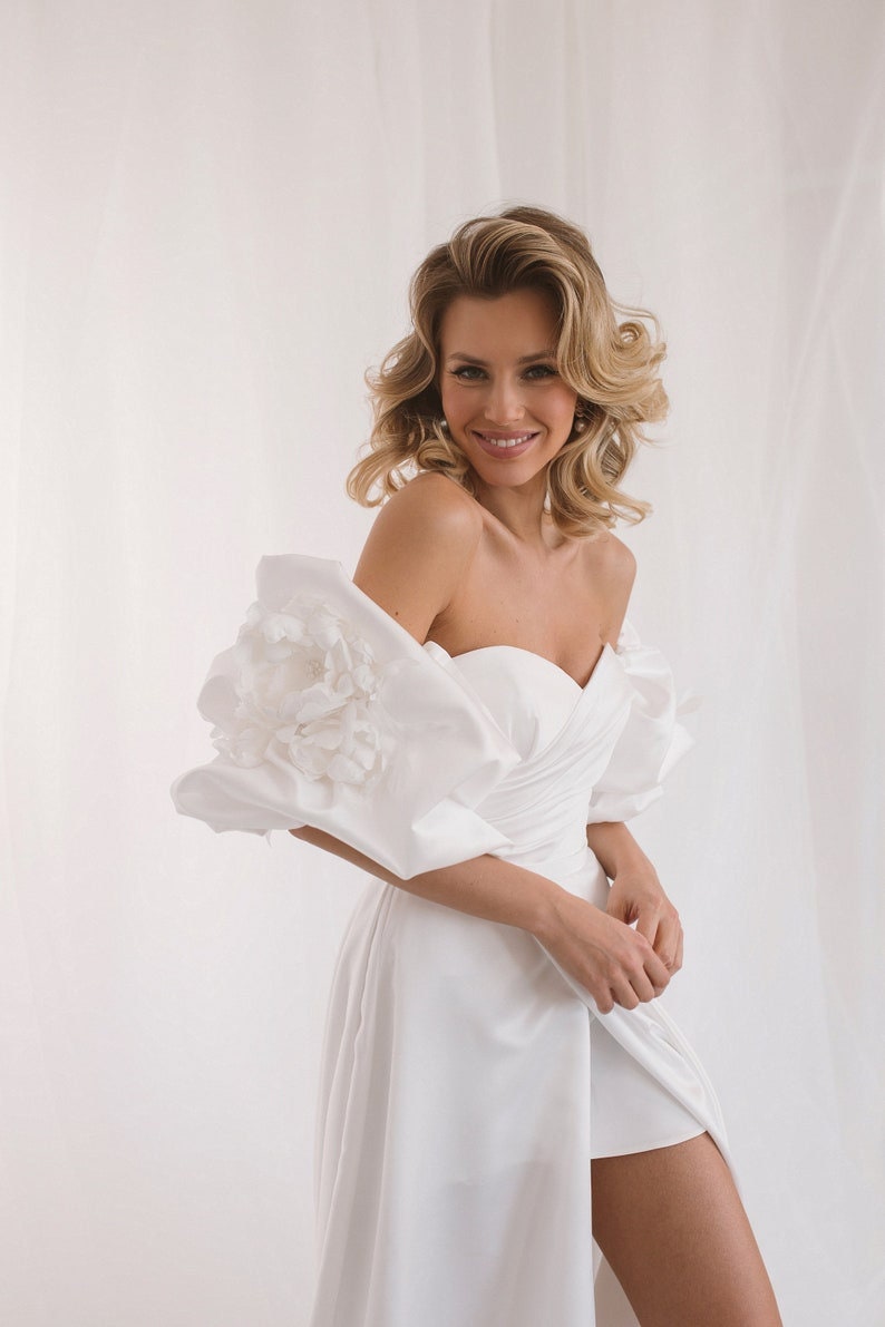 Detached Satin Cloud Oversized Floral Appliqué Sleeves.