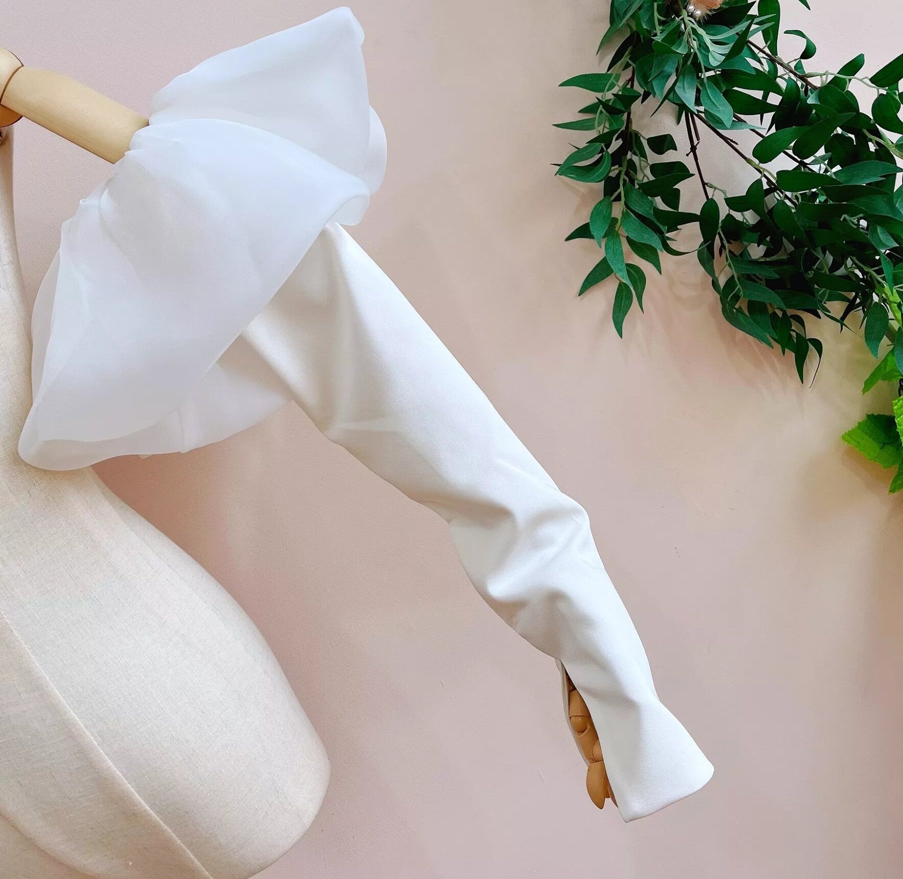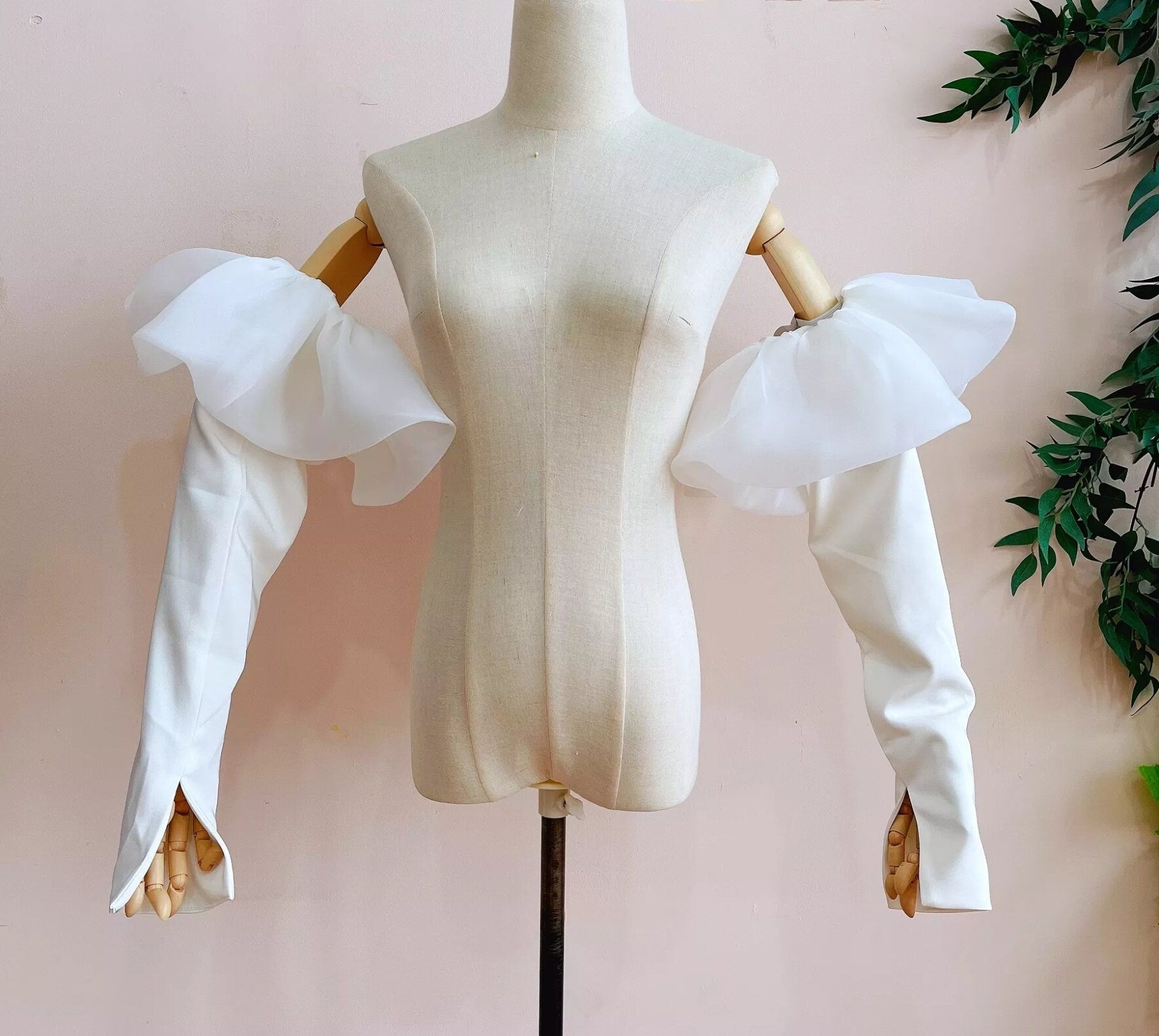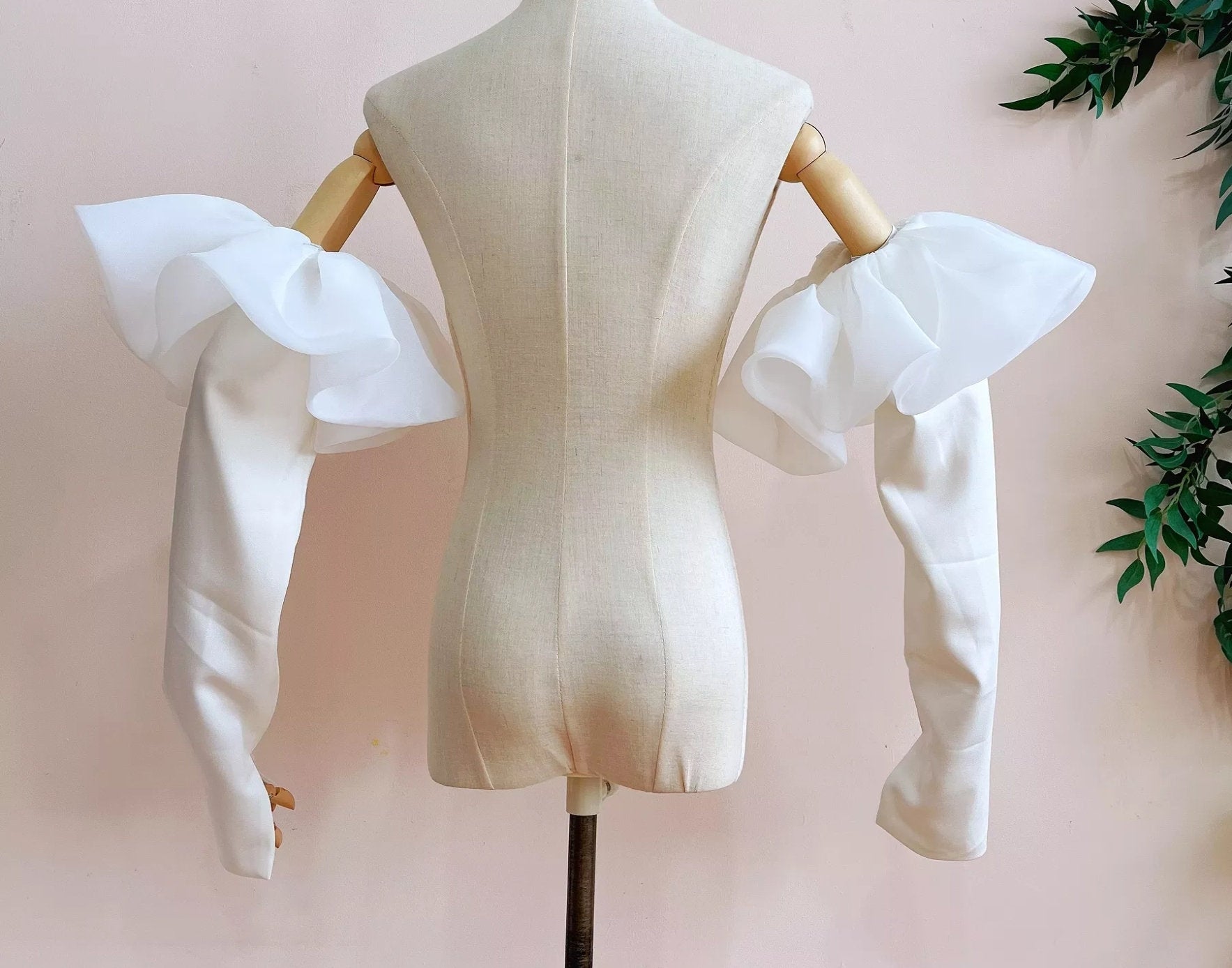 Detached Satin Organza Three Quarter Ruffled Arm Sleeves.