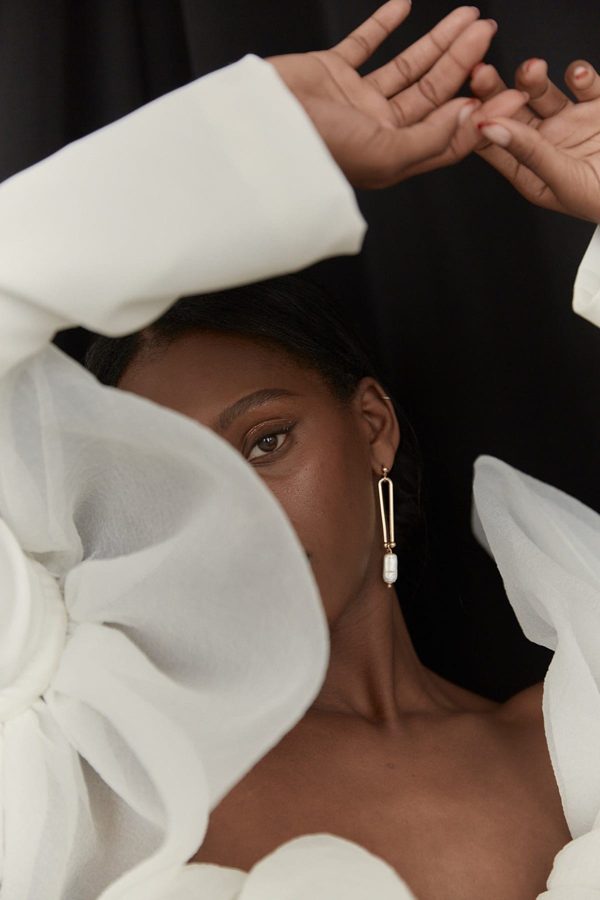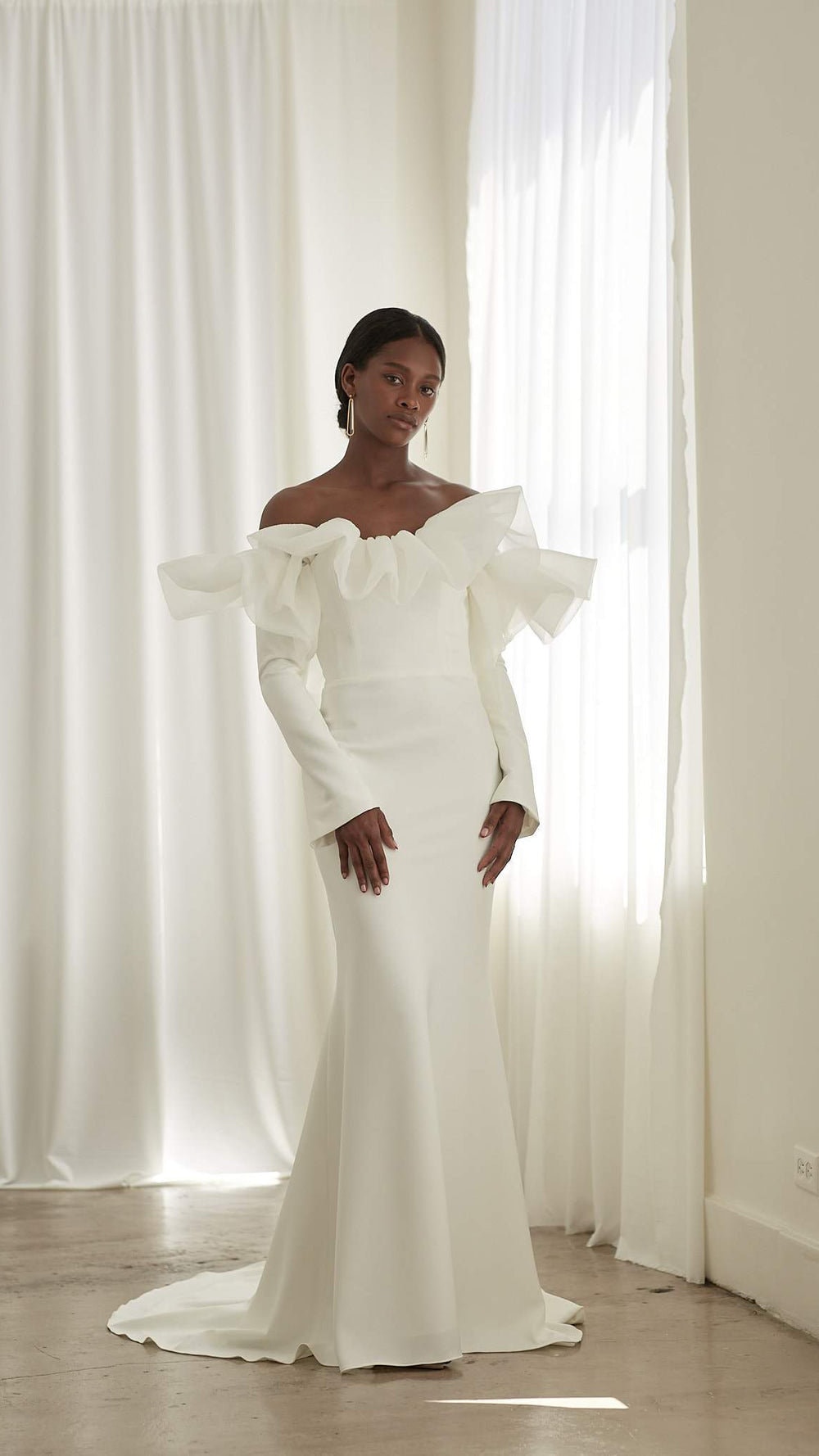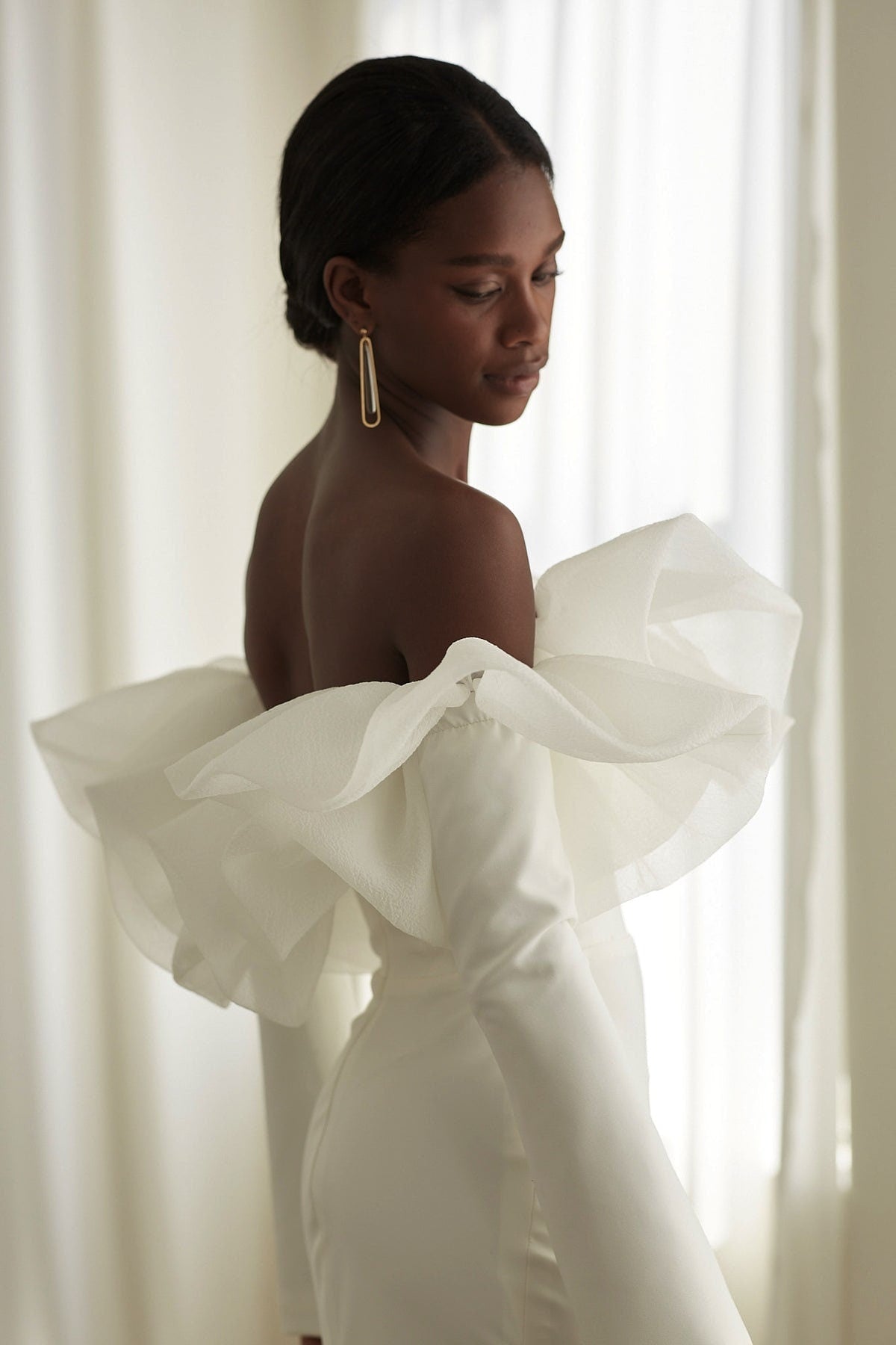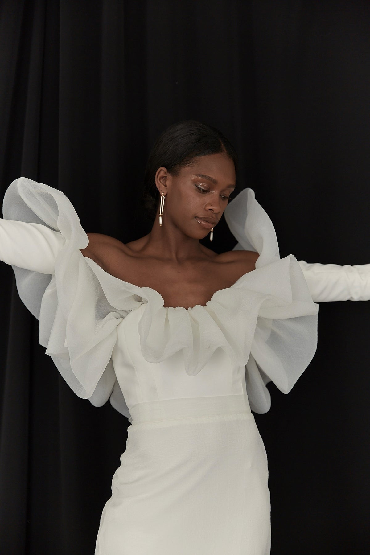 Detached Satin Organza Three Quarter Ruffled Arm Sleeves.