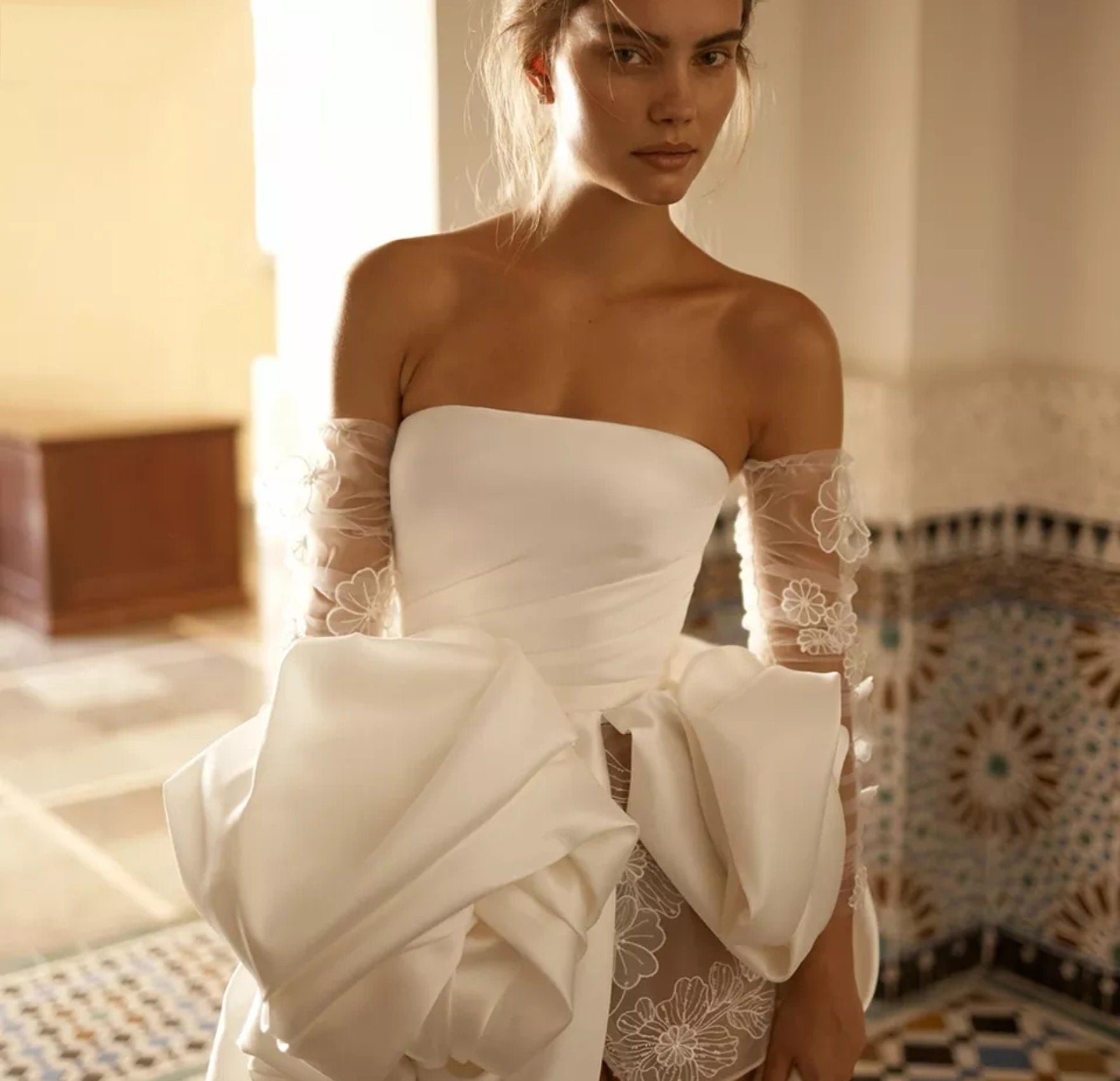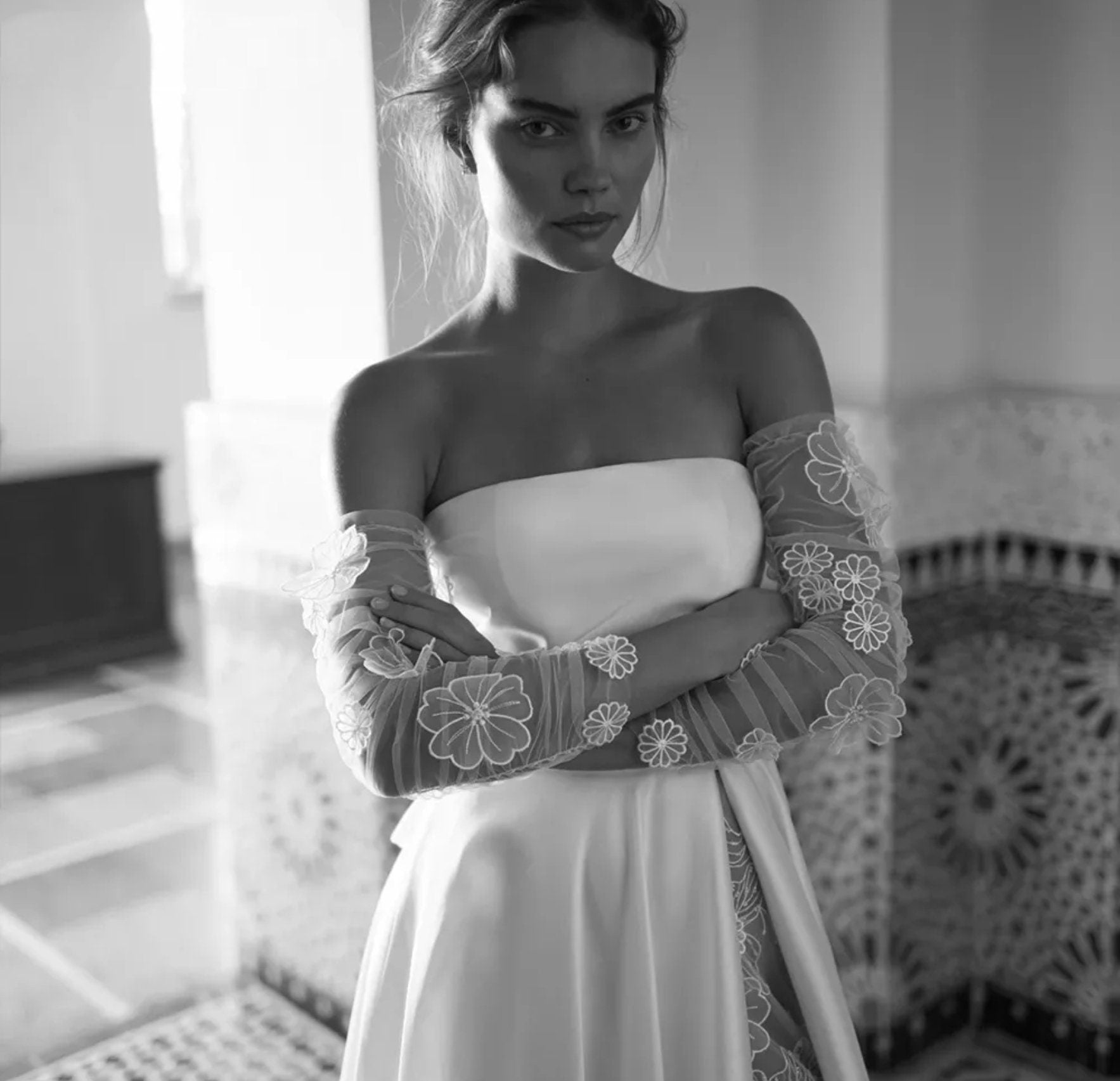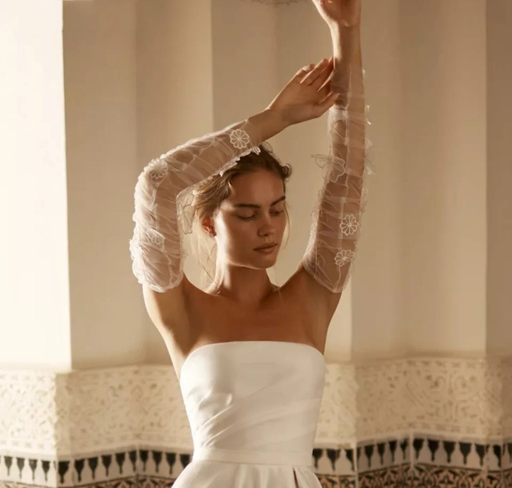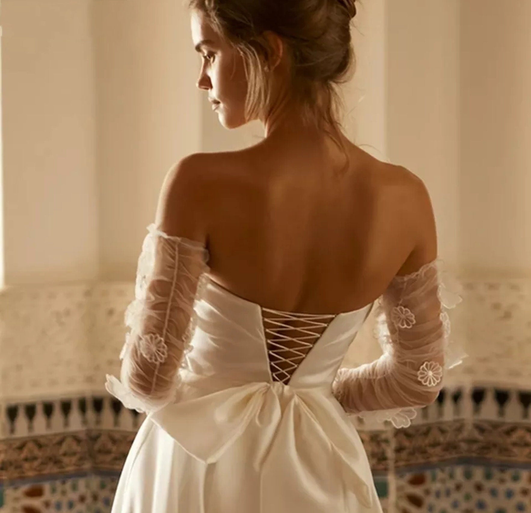 Detached Sheer 3D Floral Appliqué Boho Beach Sleeves.