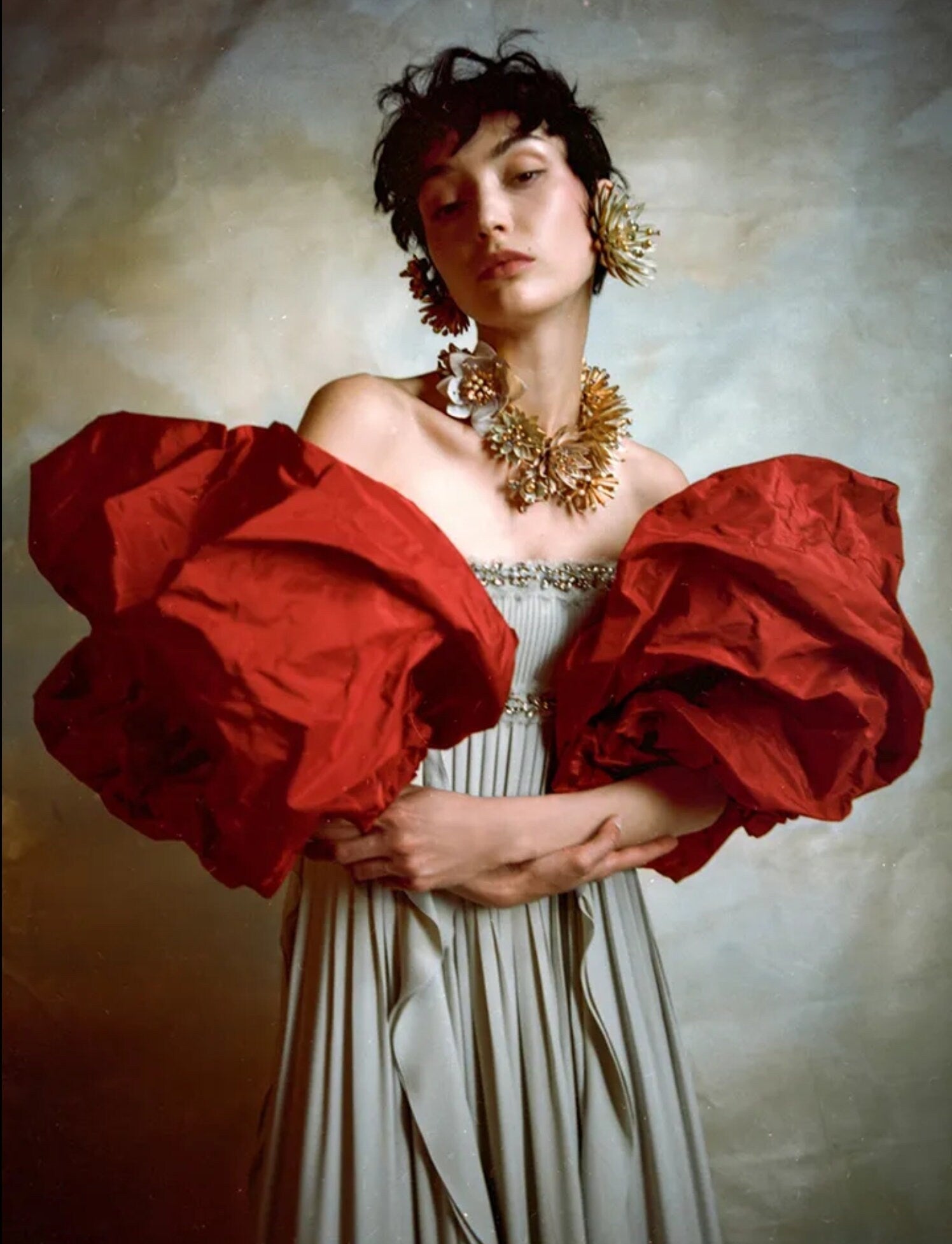 Detached Short Taffetta Crinkle Look Cloud Sleeves.