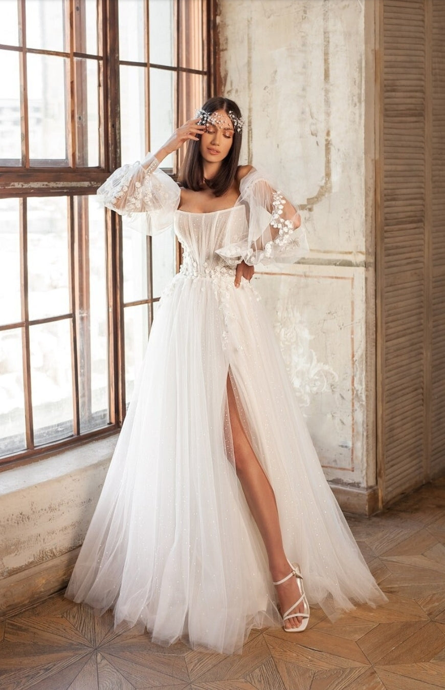 Detached Tulle Fold Over Bicep Lilly Of The Valley Floral Vine Sleeves.