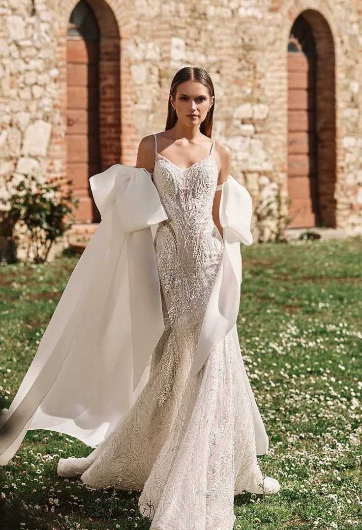 Flowing Organza Big Bow Knot Tie Detail Sleeves Bridal Special Occasion Cape