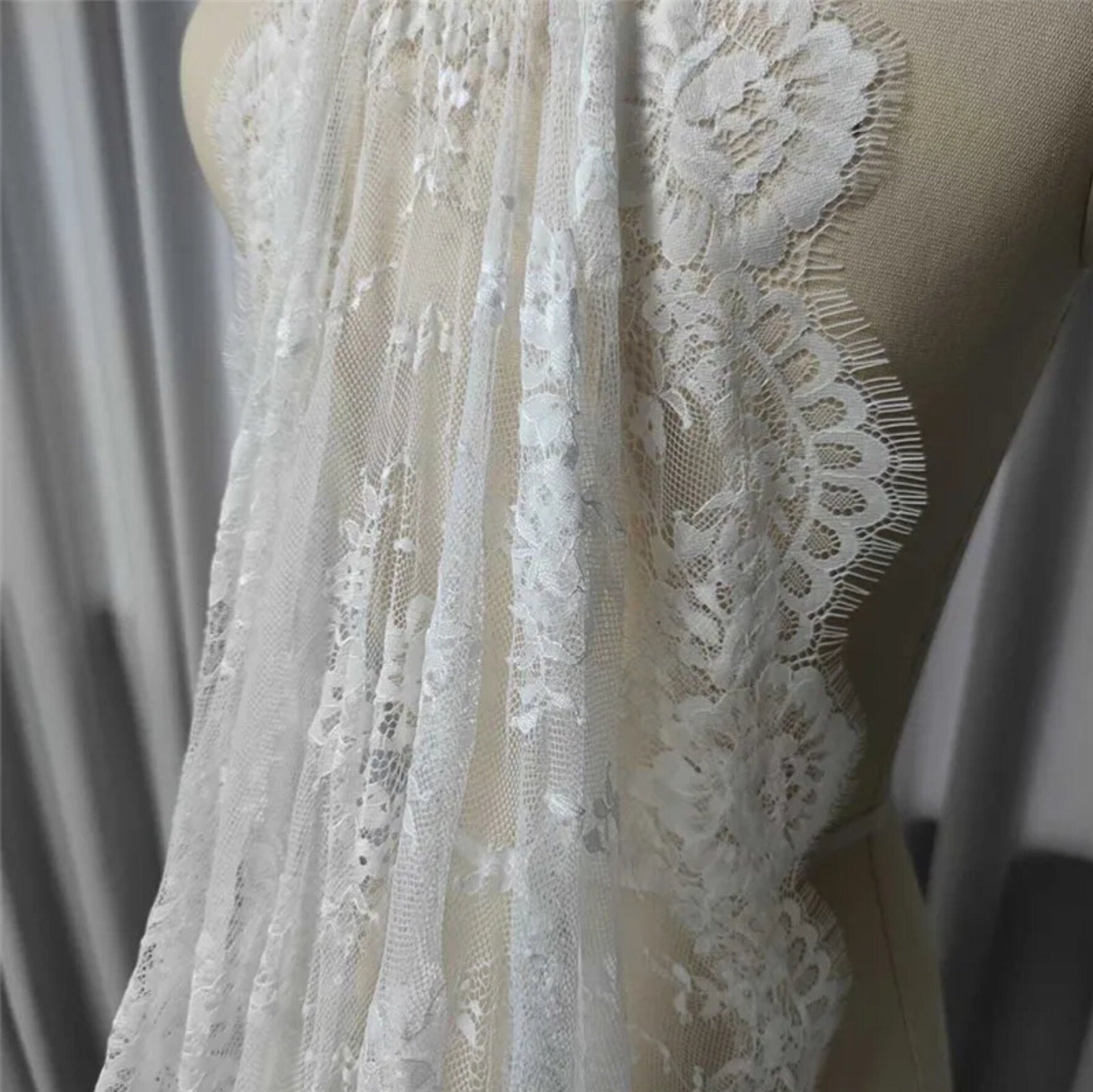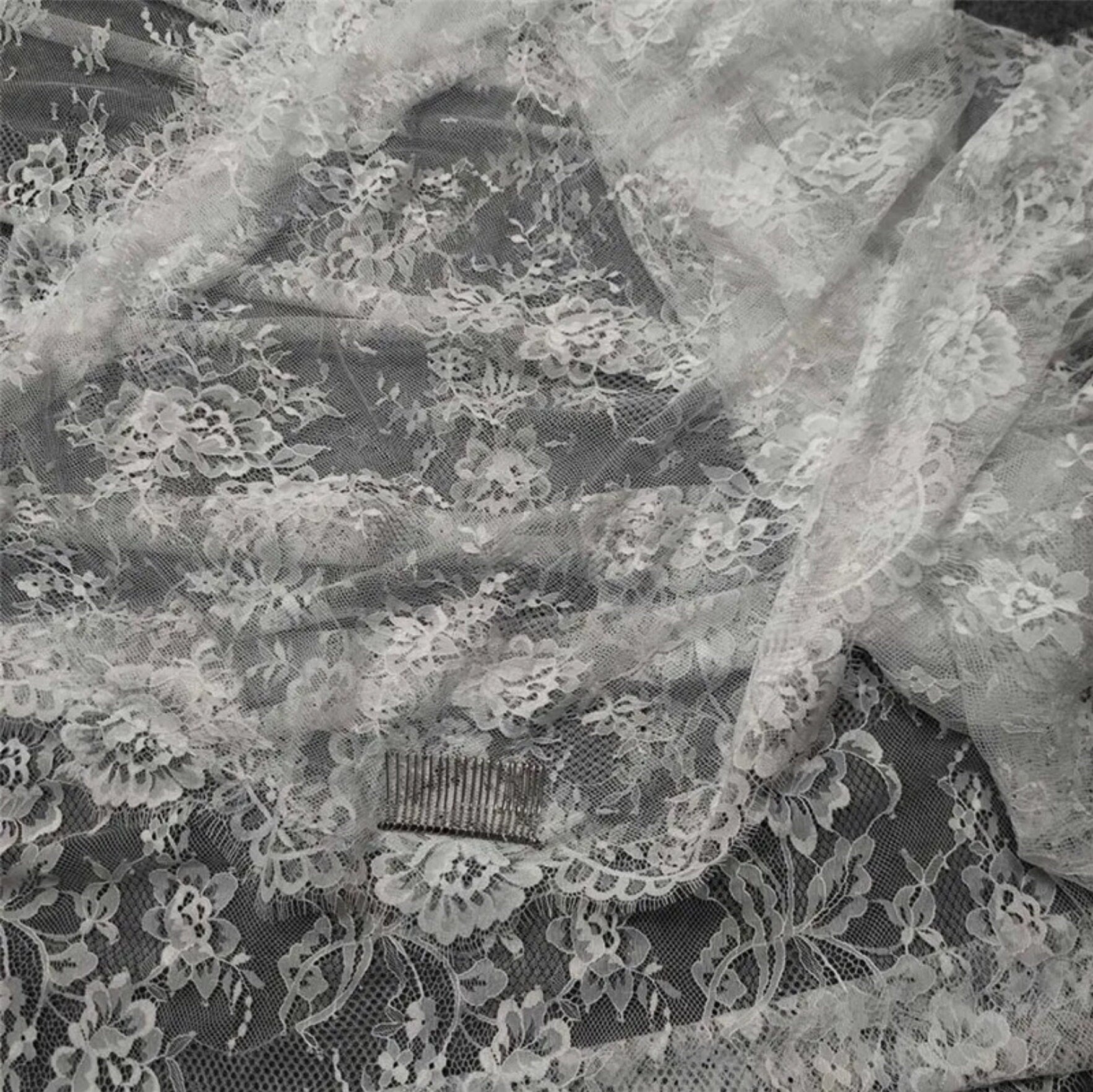 Full Floral Eyelash Lace Ivory Scalloped Edge Soft And Romantic Bridal Veil.