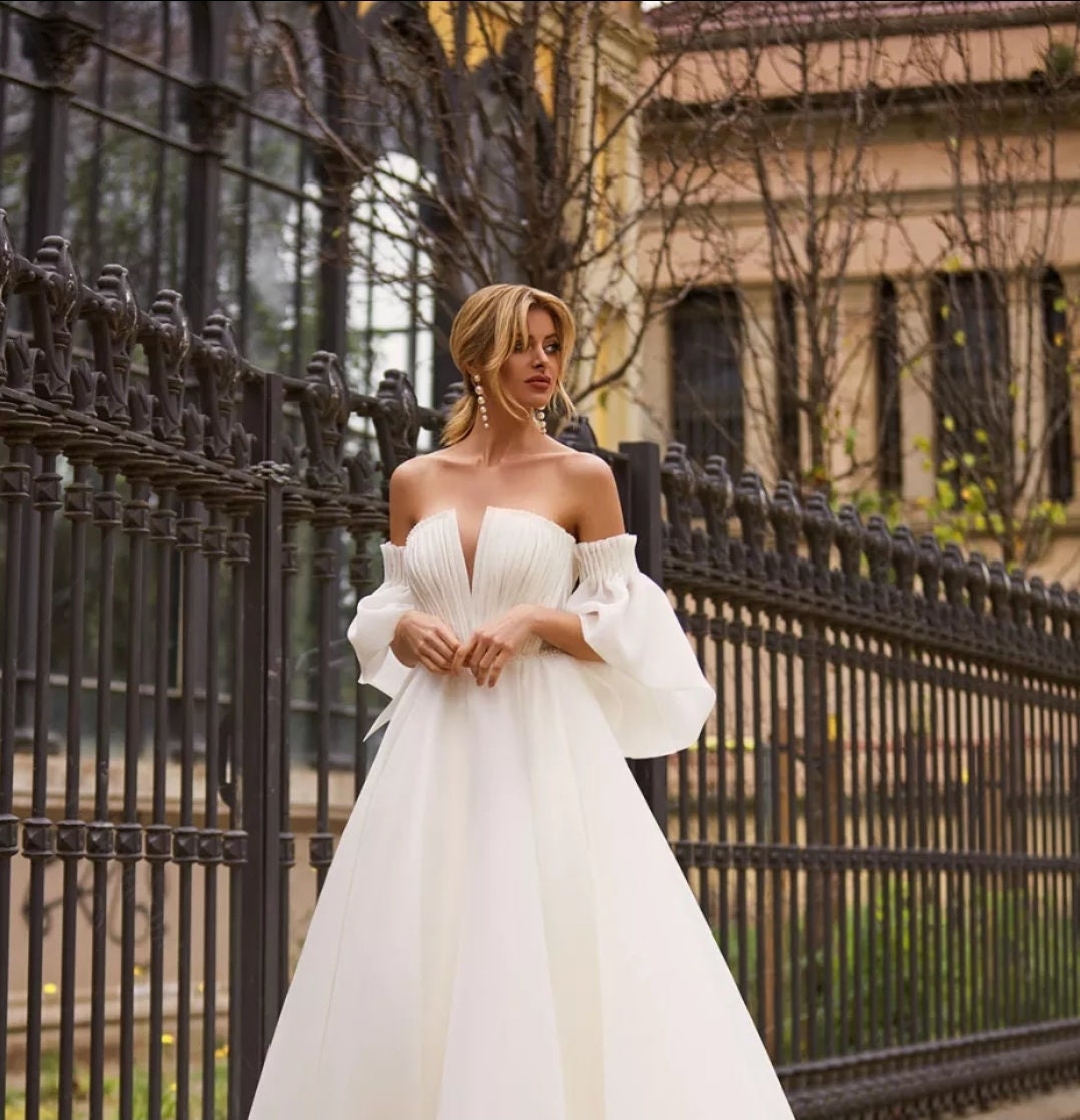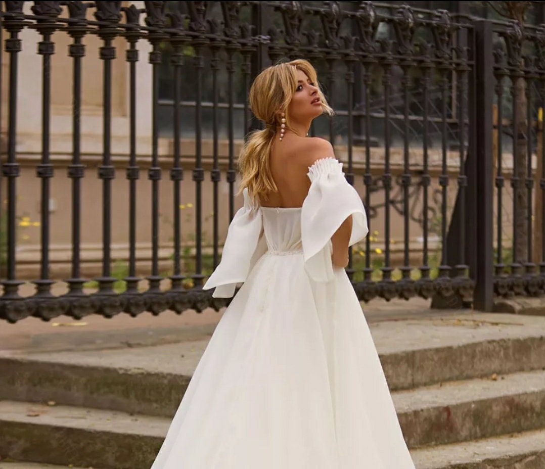 Irregular Wide Pleated Trim Detached Organza Sleeves.