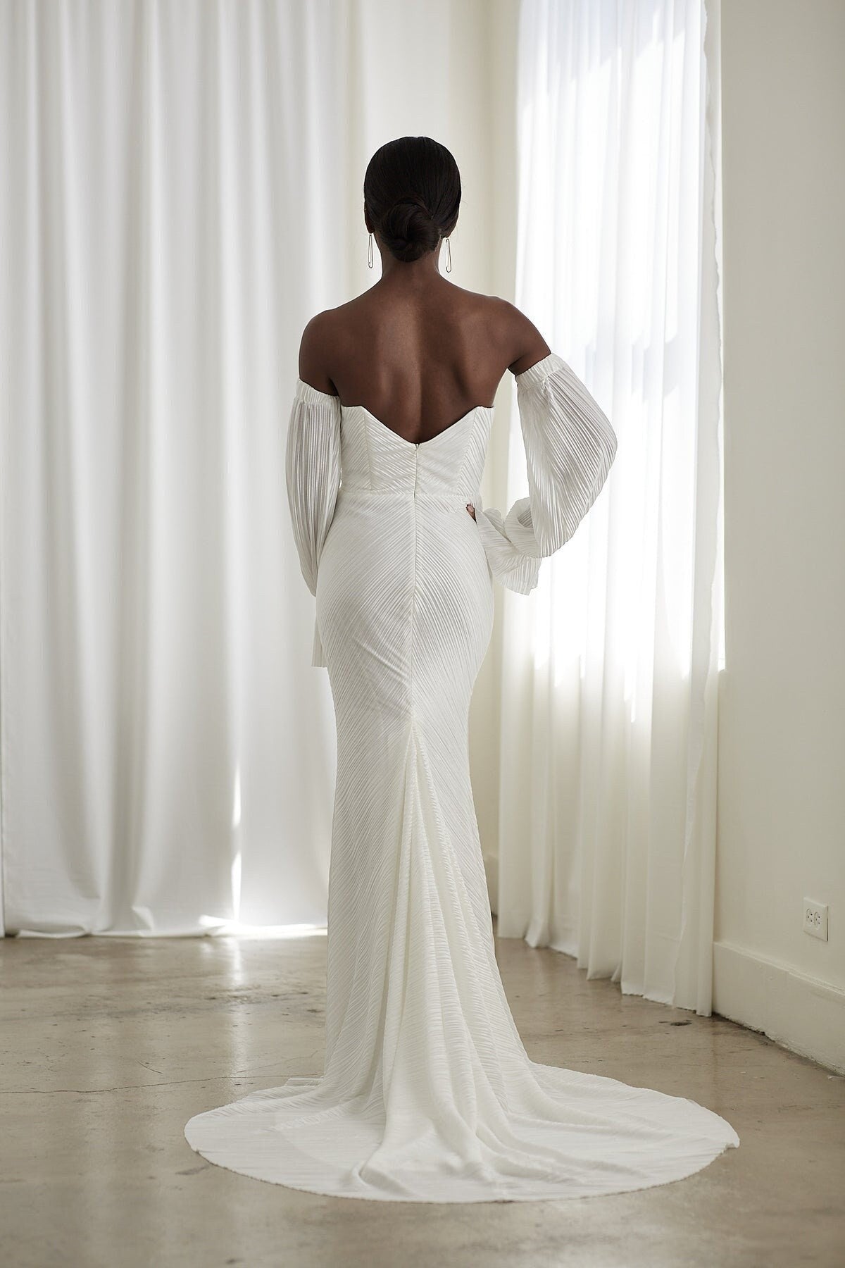Pleated Satin Detached Straight Forward Short Flare Sleeves.