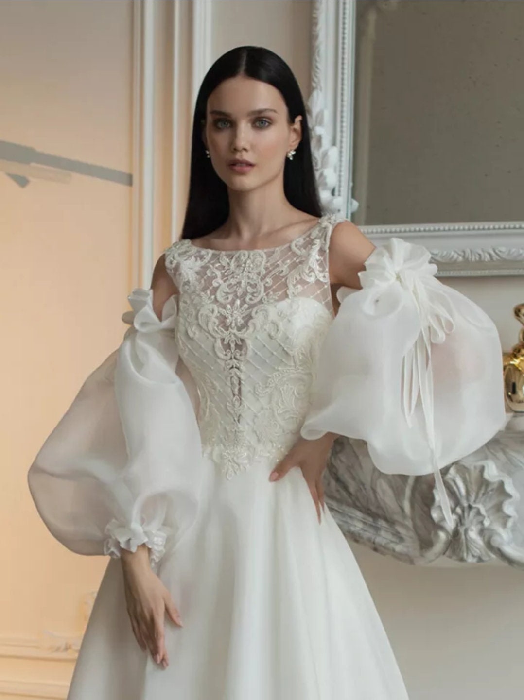Ribbon & Bow Organza Lantern Detached Bridal Sleeves.