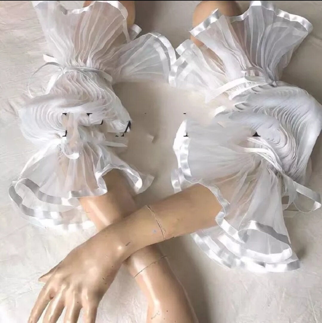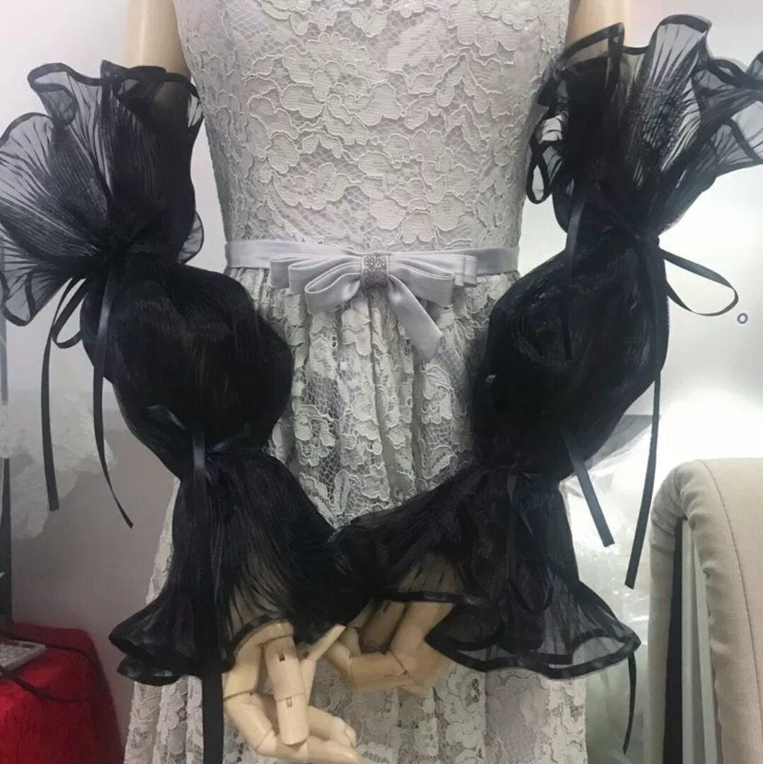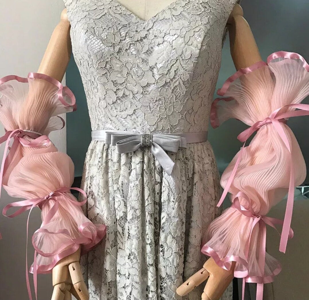 Ribbon Cinched Marmaluke Detached Sleeves.