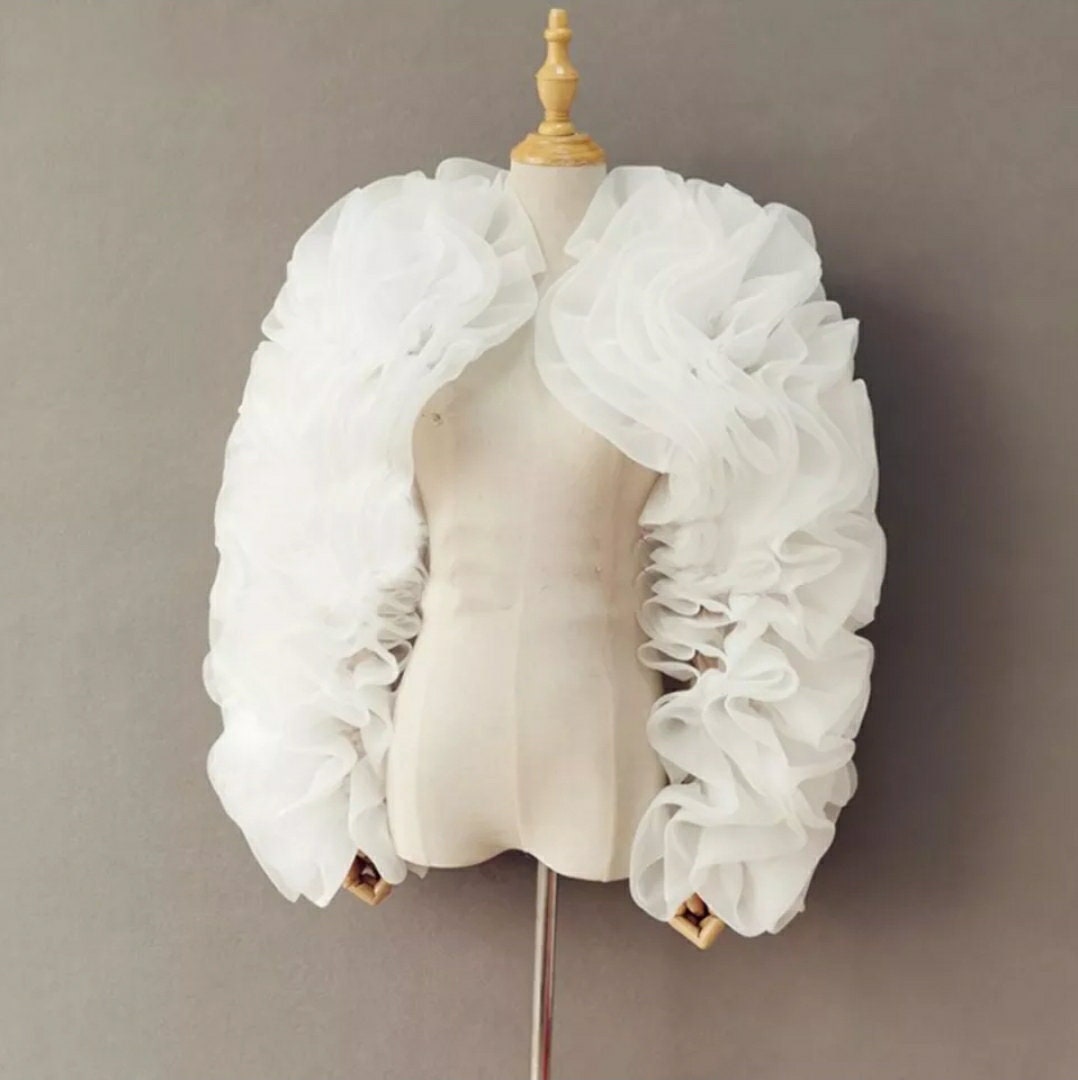 Tulle Full Sleeve Exaggerated Ruffles Detached Bridal Sleeves.