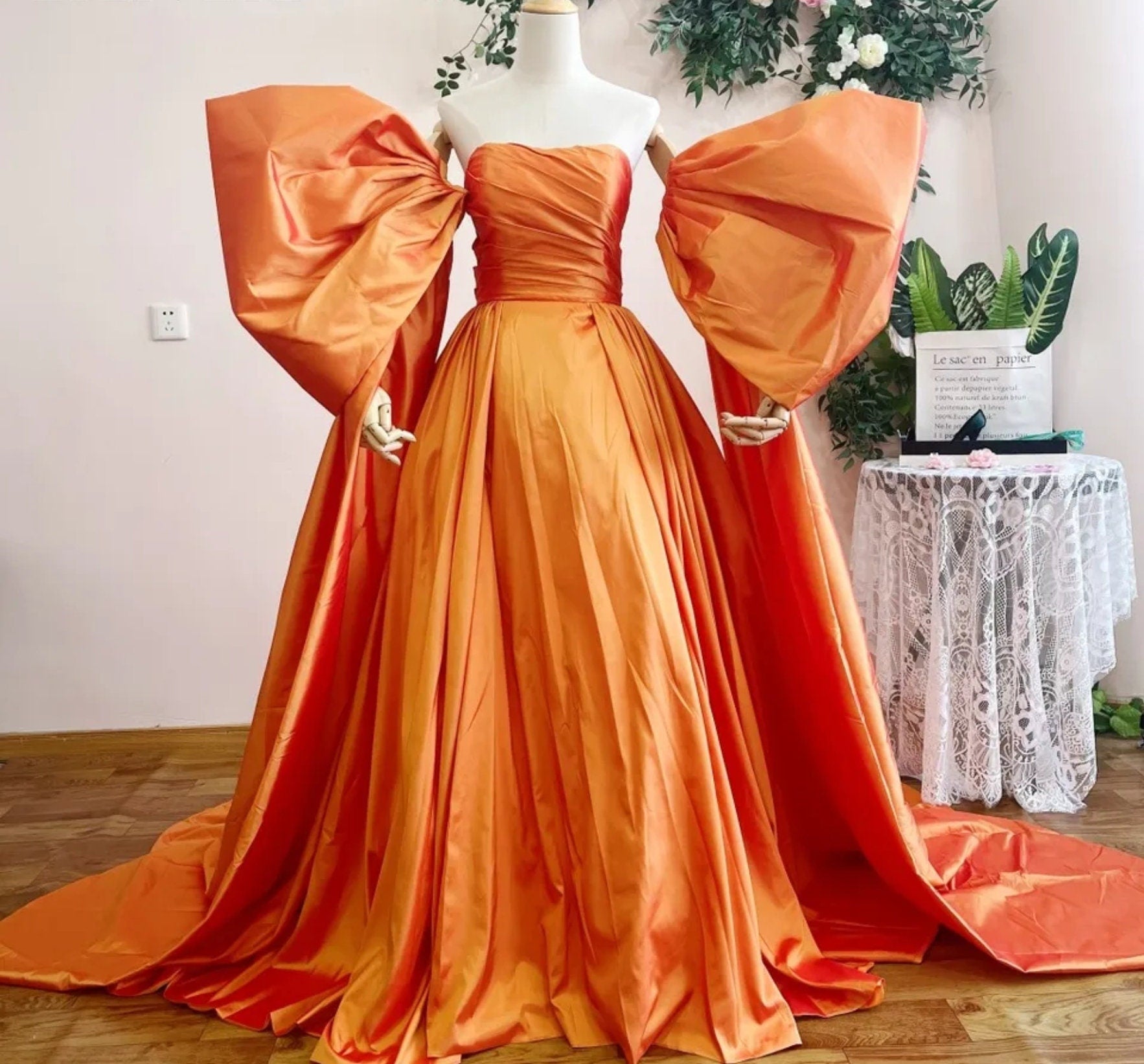 Detached Taffeta Dramatic Oversized Bicep Bow Floor Length Sleeves.