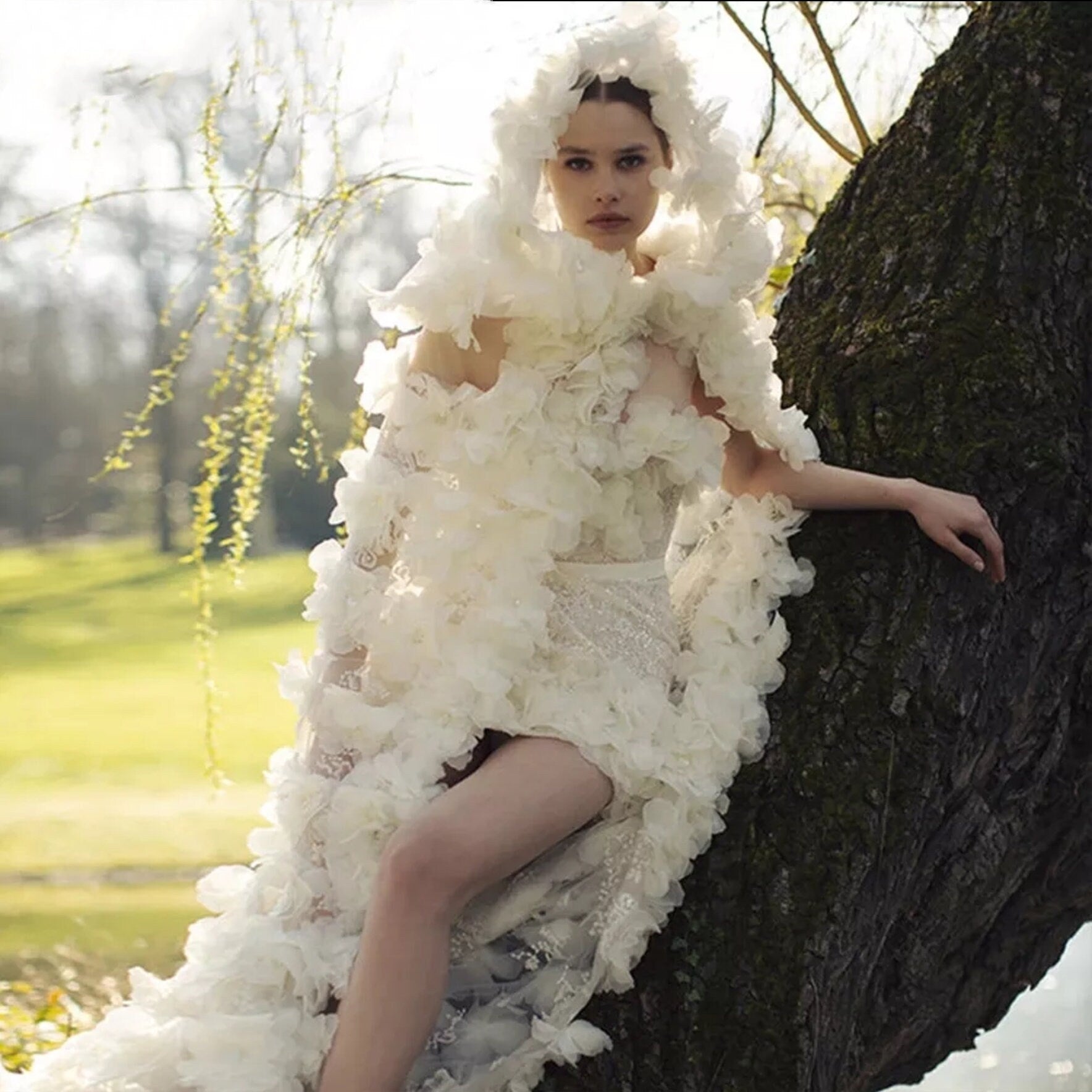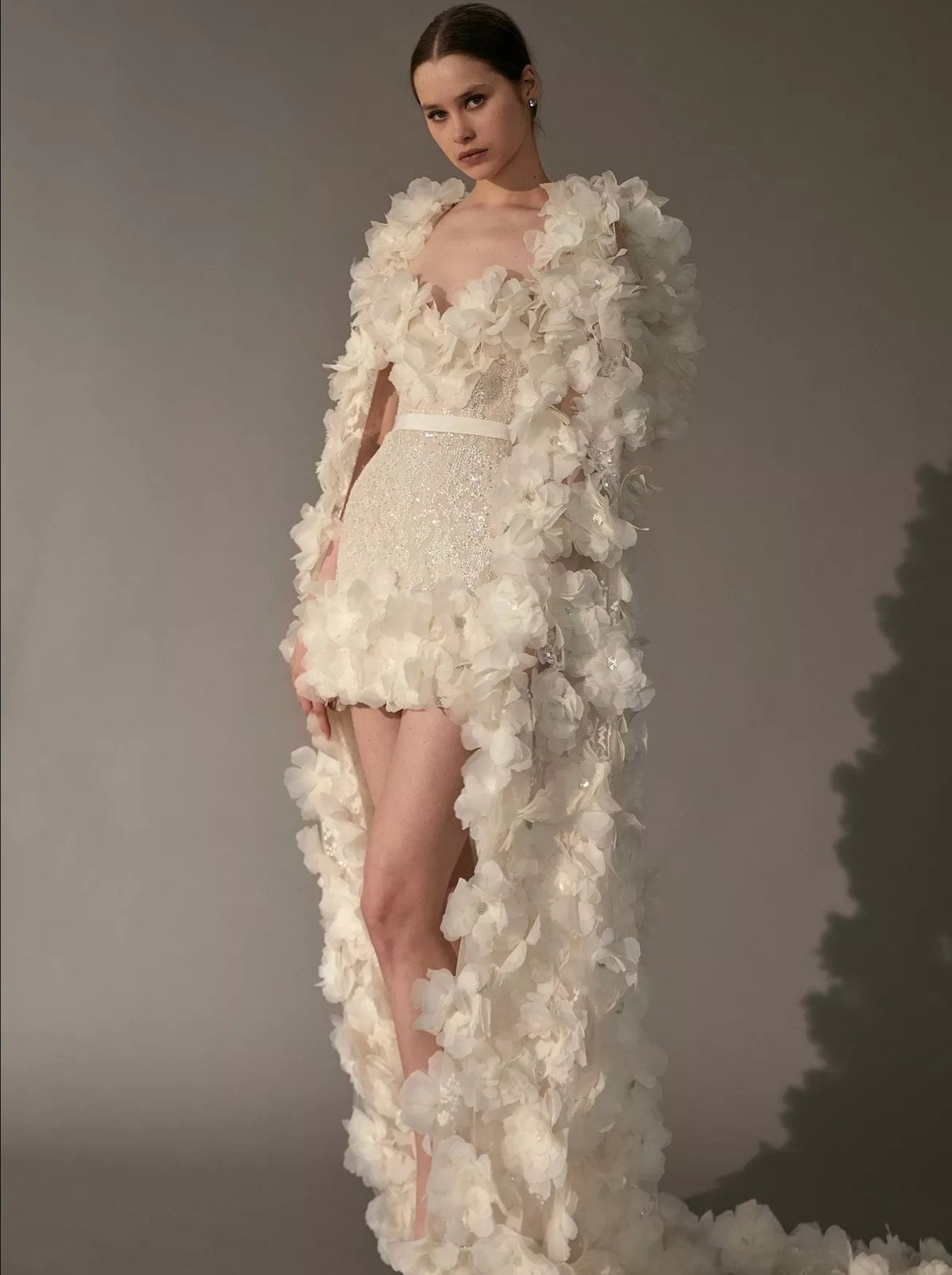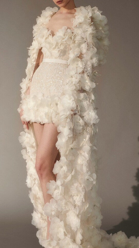 Full 3D Floral Embroidered Hooded Organza Cape.