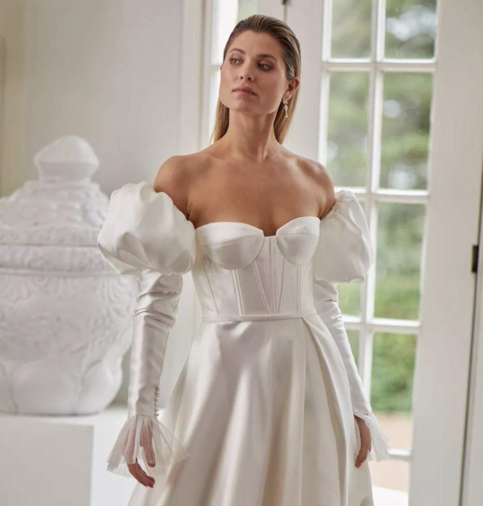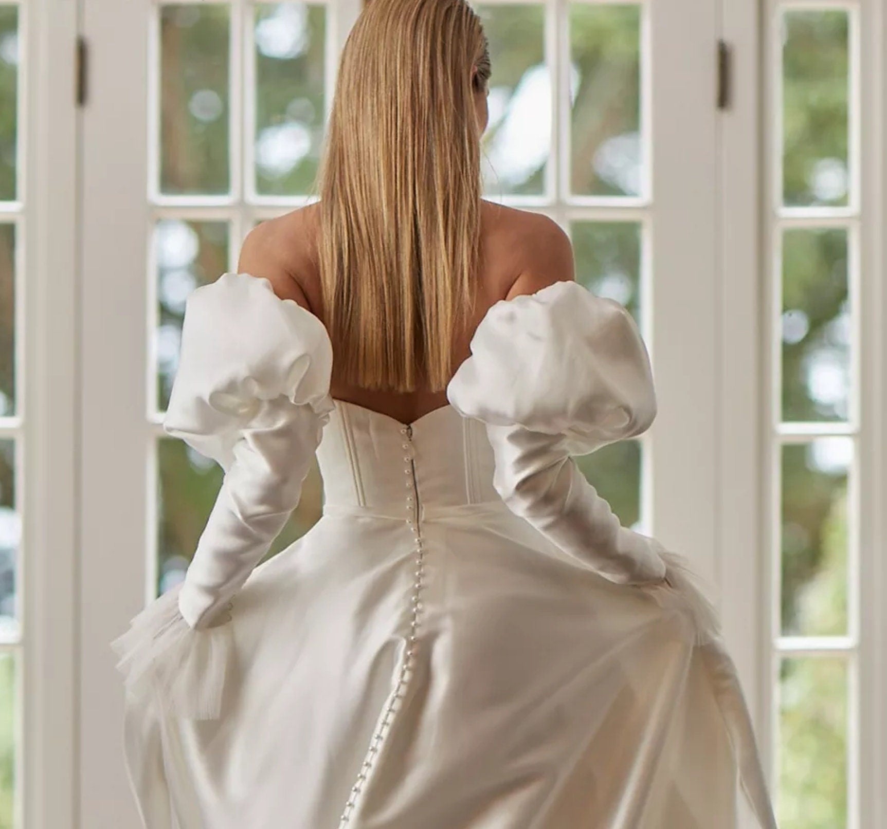 Detached Satin Juliet Sleeve With Exaggerated Tulle Wrists.