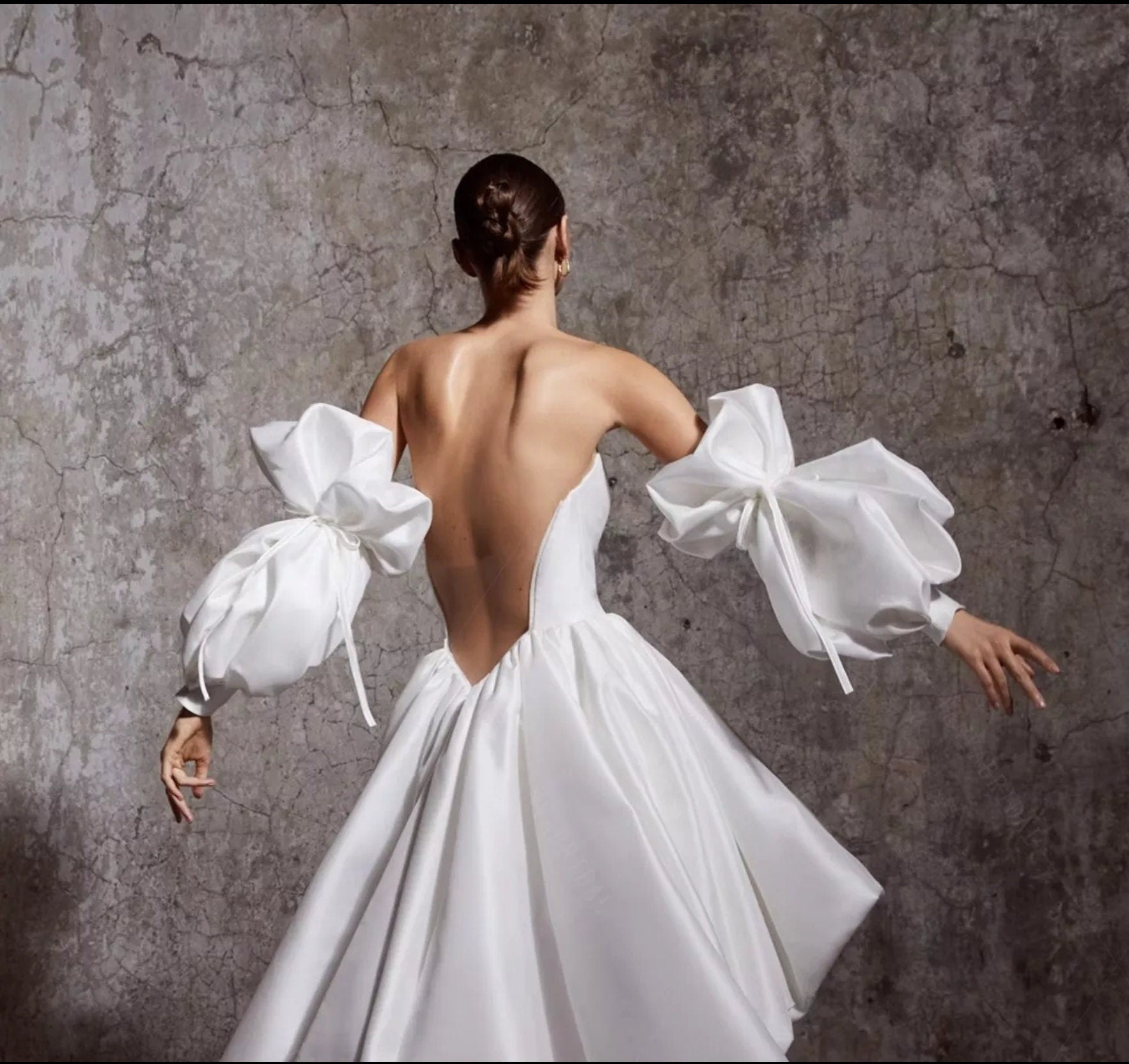 Victorian Double Satin Puff & Ribbon Center Detached Sleeves